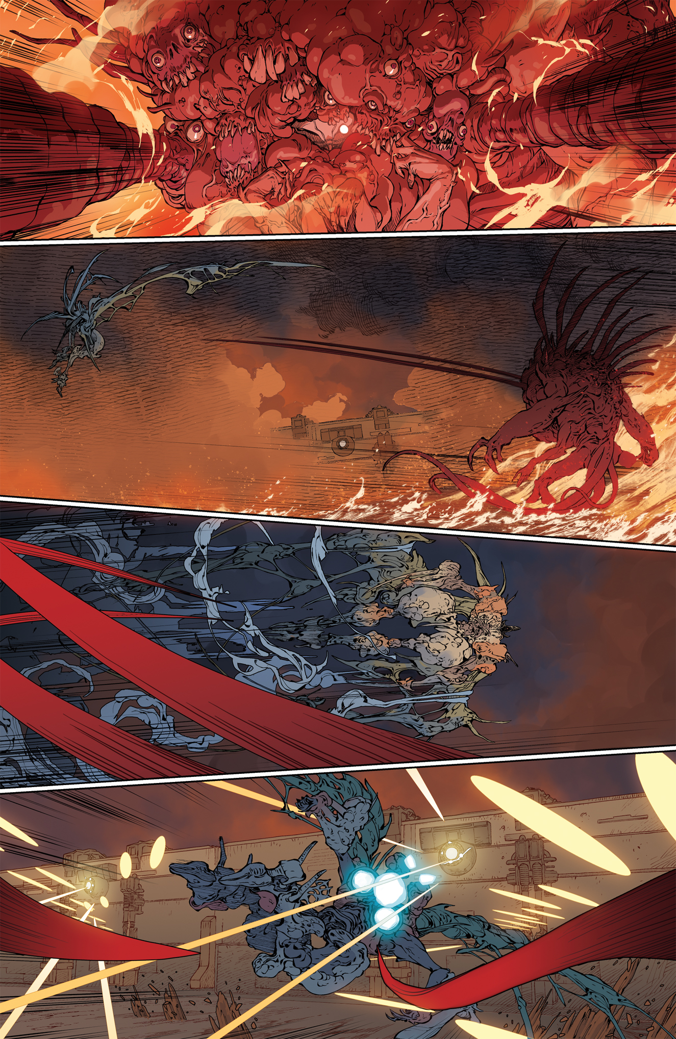 Written by Ram V, drawn by Evan Cagle, colored by Dave Stewart, and lettered by Aditya Bidikar.