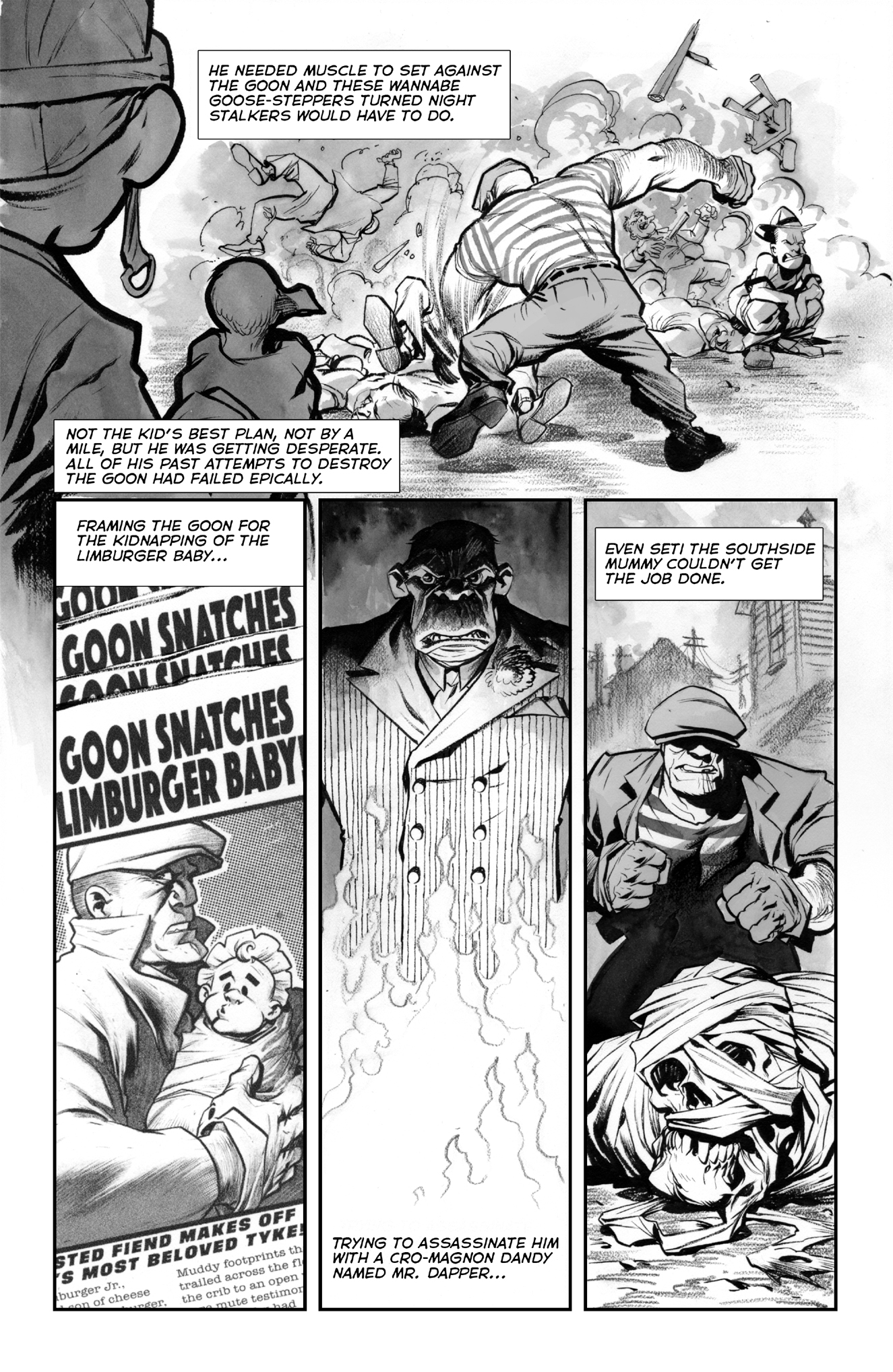The return to Lonely Street hasn't been easy for the Goon and Franky. And just as they've finally got the various gangs of blood suckers and night stalkers back in line, and they can finally relax with a nice night out bowling, a new threat appears. One that will shake the very foundations of Nameless Town. Also, Spider gets hooked on the junk. Drama!