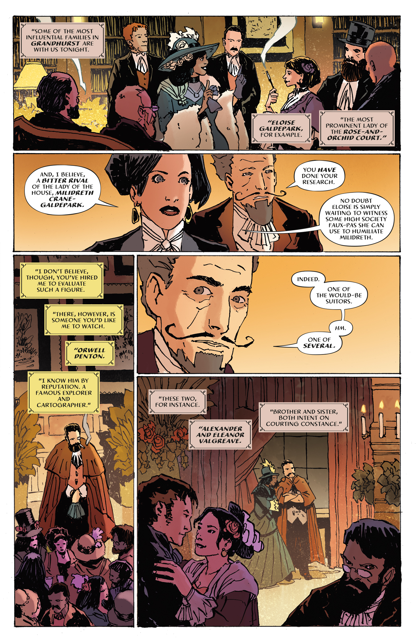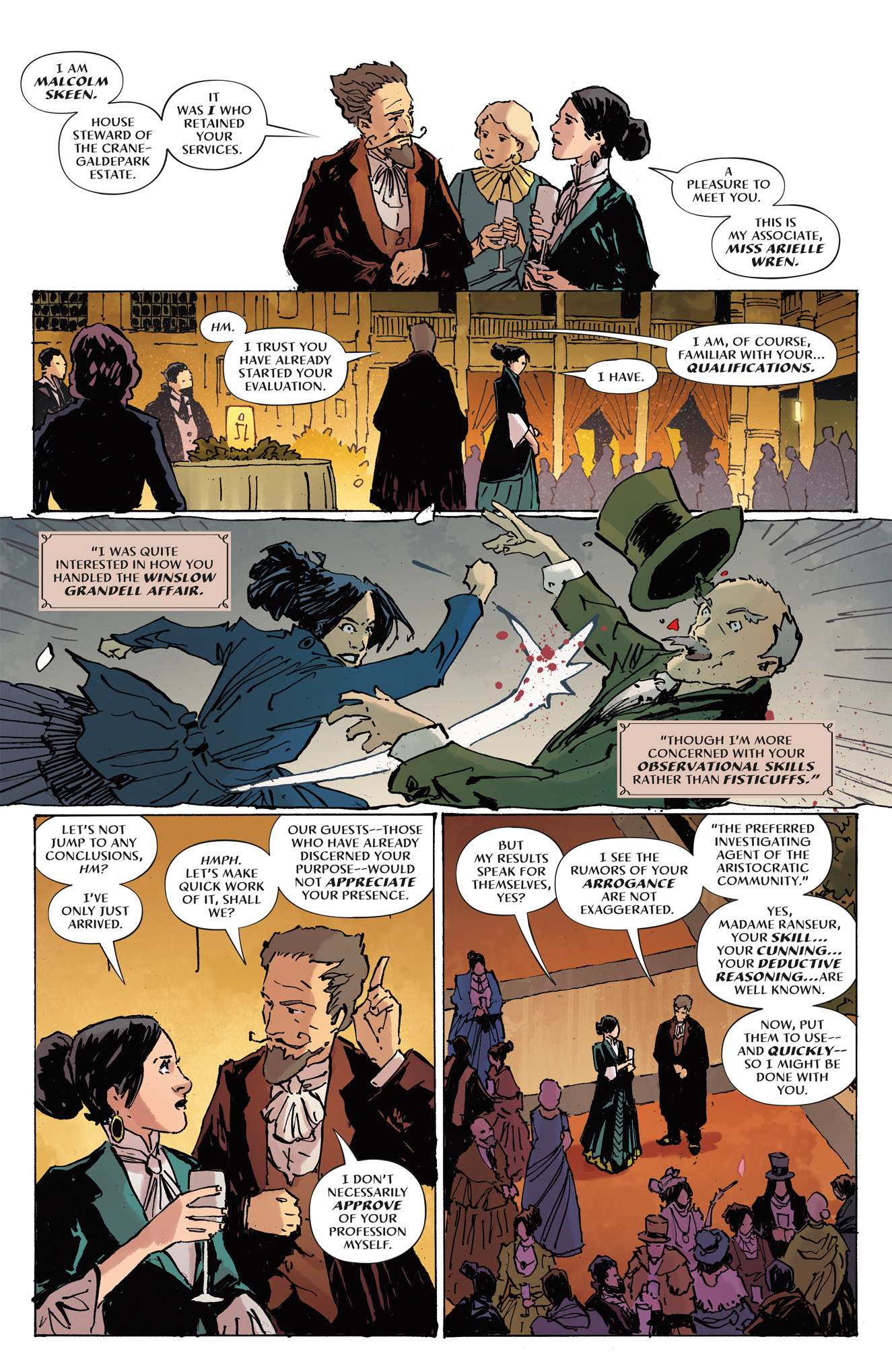 Created in association with the tabletop RPG of the same name, Our Brilliant Ruin depicts a world where intricate social ties of allegiance and conflict are tested by the presence of the Ruin—a malignant force that corrodes the world and turns people into horrific creatures. In “Horror at Crane Mansion,” an investigator for hire finds herself in deep when a simple job vetting a wealthy woman’s suitors becomes a death trap. Who is a tragic victim, and who is the ruthless hunter?