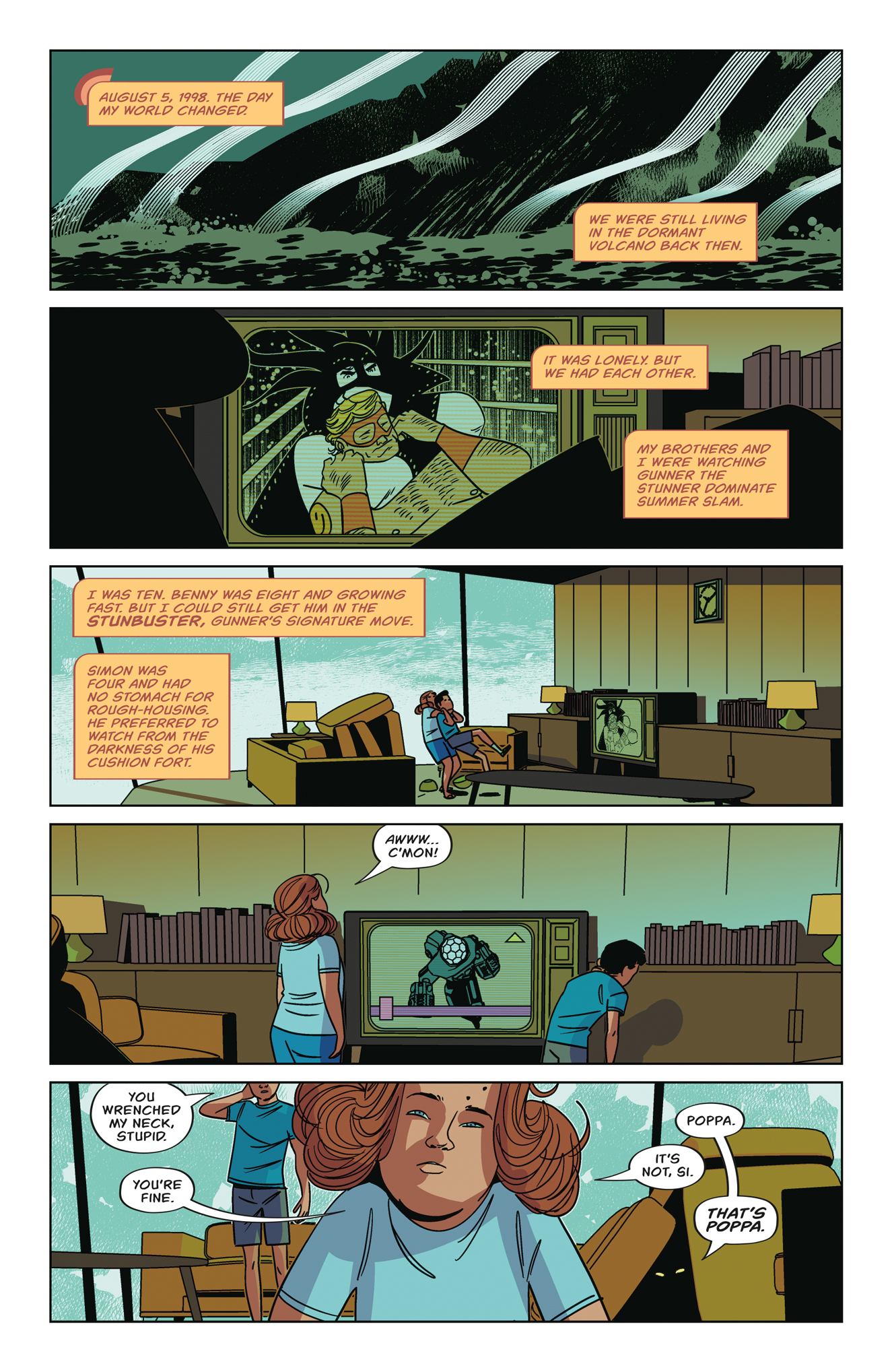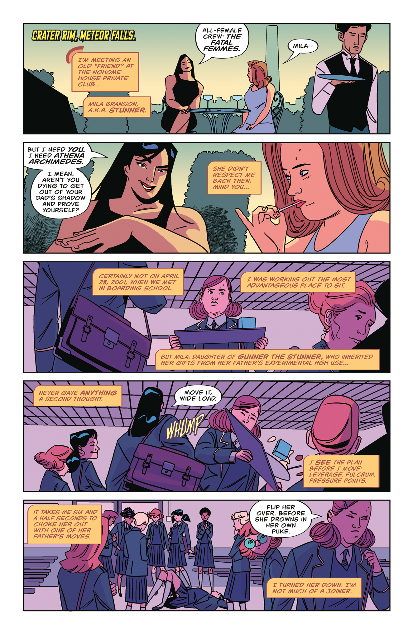 Napoleon Archimedes breaks the news to the family that he's dying, including, of all people, his longtime arch-nemesis The Searcher... None of them take it particularly well. Then there's heists, androids, handball, and a look back to "That Fateful Day" when Agatha realized her father was the most feared criminal on the planet. Plus, the secret origin of The Searcher is finally revealed.