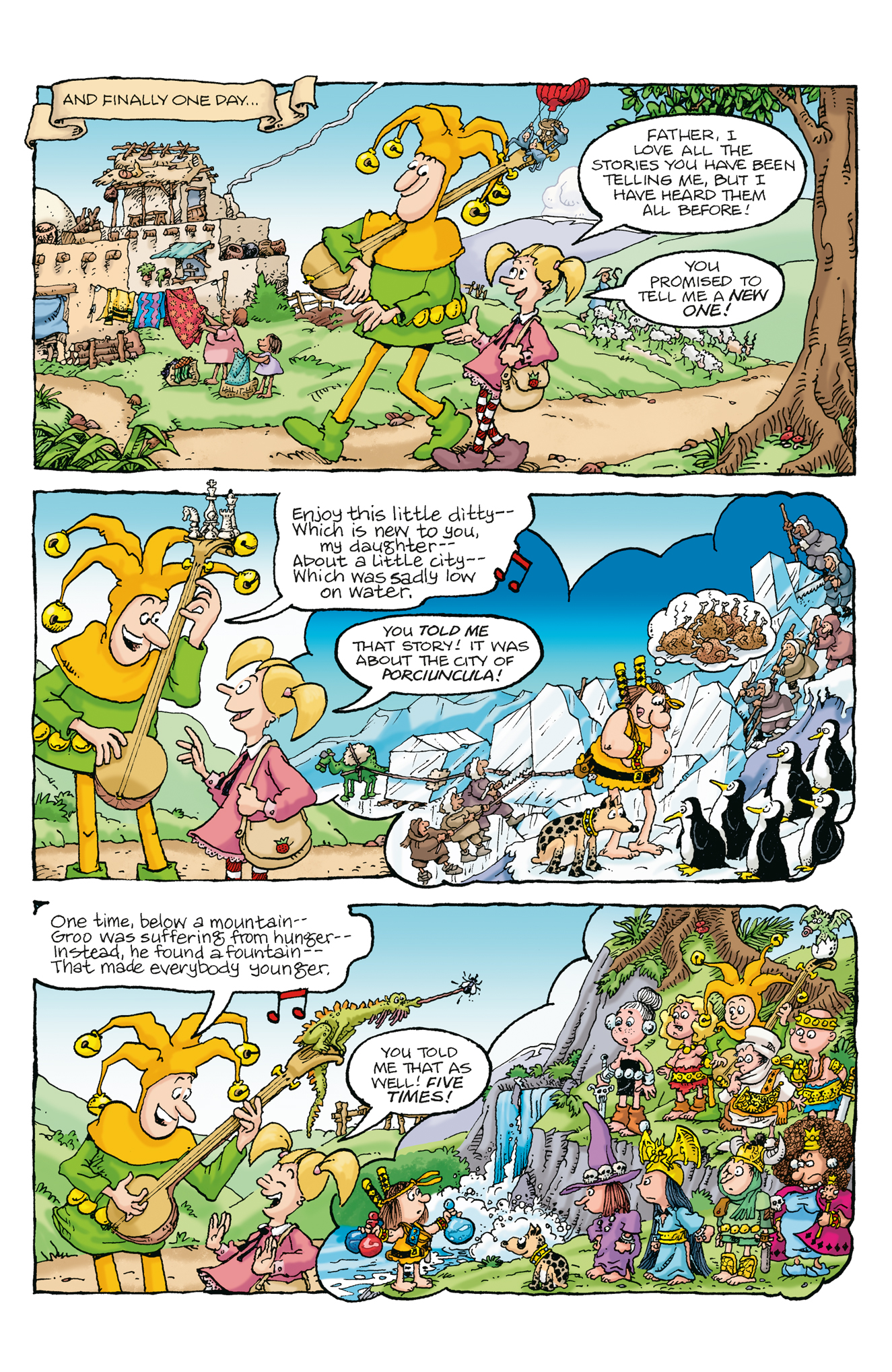 The final comical chapter in Groo’s sometimes-rhyming and fully-ridiculous “Minstrel Melodies” arc! What new songs will the Minstrel sing about Groo—and what new secrets will be revealed about the bumbling barbarian? Sergio Aragonés and Mark Evanier deliver another wild Groo ride, with exquisite colors by Carrie Strachan and Eisner Award-winning lettering by Stan Sakai.