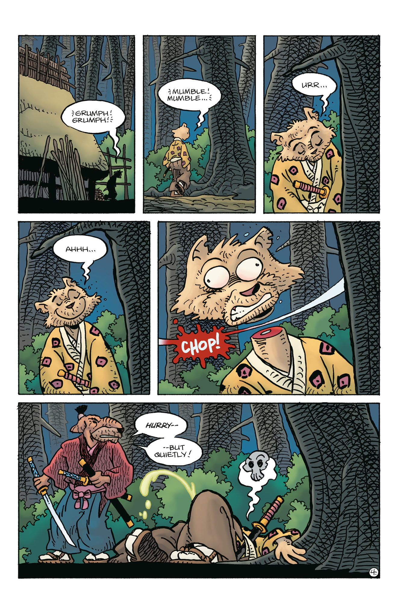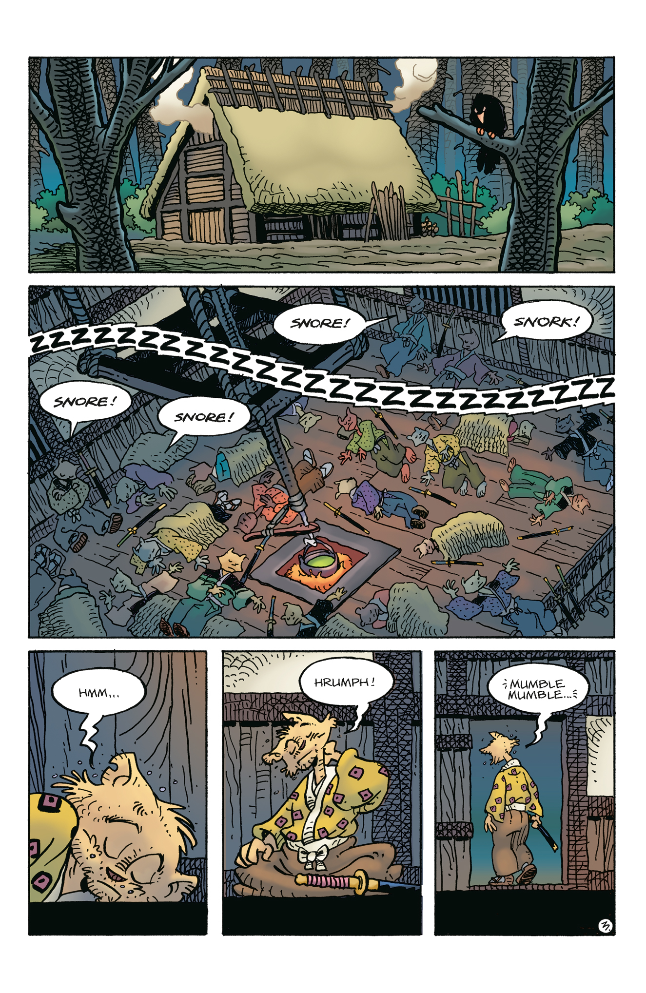 The conclusion of “The Crow” story arc features an all-out battle between the bounty hunters and the bandits! Though greatly outnumbered, Usagi and the bounty hunters are confident they can even the odds by taking the criminals by surprise. Their plans go awry, however, and the bandit chief, Jimmu, abandons his men to make his escape. One goes after him, but they’re surprised by an unexpected attack!