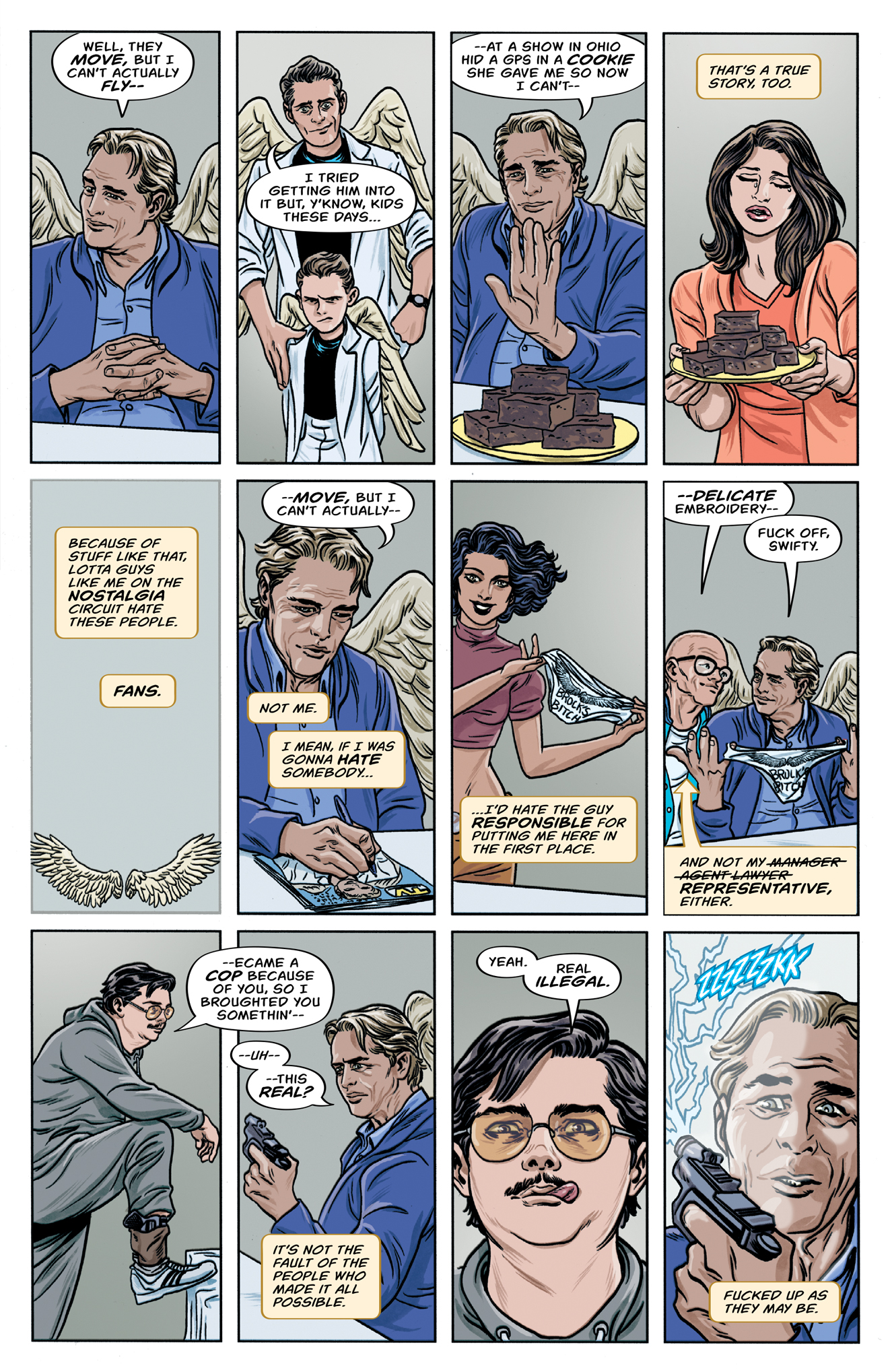 Benjamin "Brock" Bronkowicz is a washed up, bird-winged actor who is NOT a superhero, but he once played one on TV. Now Brock spends his time on the superhero convention circuit - trying to cash in on his fleeting fame, drinking away his problems as he fades into obscurity. But a chance encounter with a mysterious woman empowers Brock to fight for a life he once thought was over. Can Brock learn to fly again? Or will his vices and the ruthless gangsters on his tail clip his wings for good? Find out in the exciting first issue of a miniseries that explores the Minor Threats universe through the eyes of legendary comic creators.
