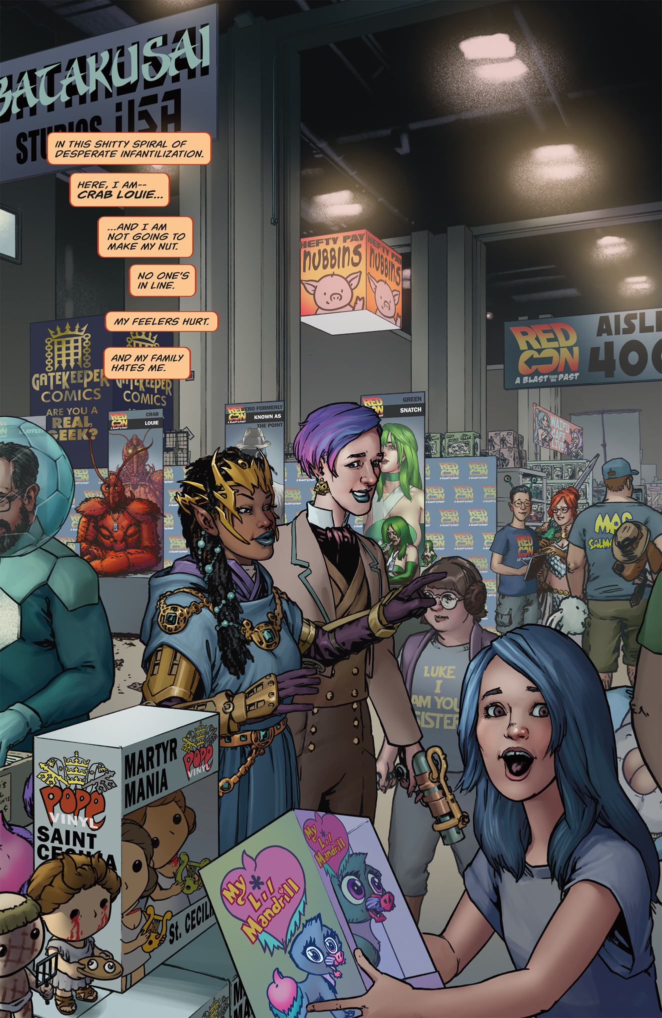Louie has been a superhero, a crustacean god, a dad and a support group sponsor. Now he's stuck in the worst section of the worst comic con in the worst neighborhood in the city during a terrorist attack, and they STILL got his lunch order wrong! Can Louie save the hostages AND make back his table fees in this thrilling adventure of weirdos?