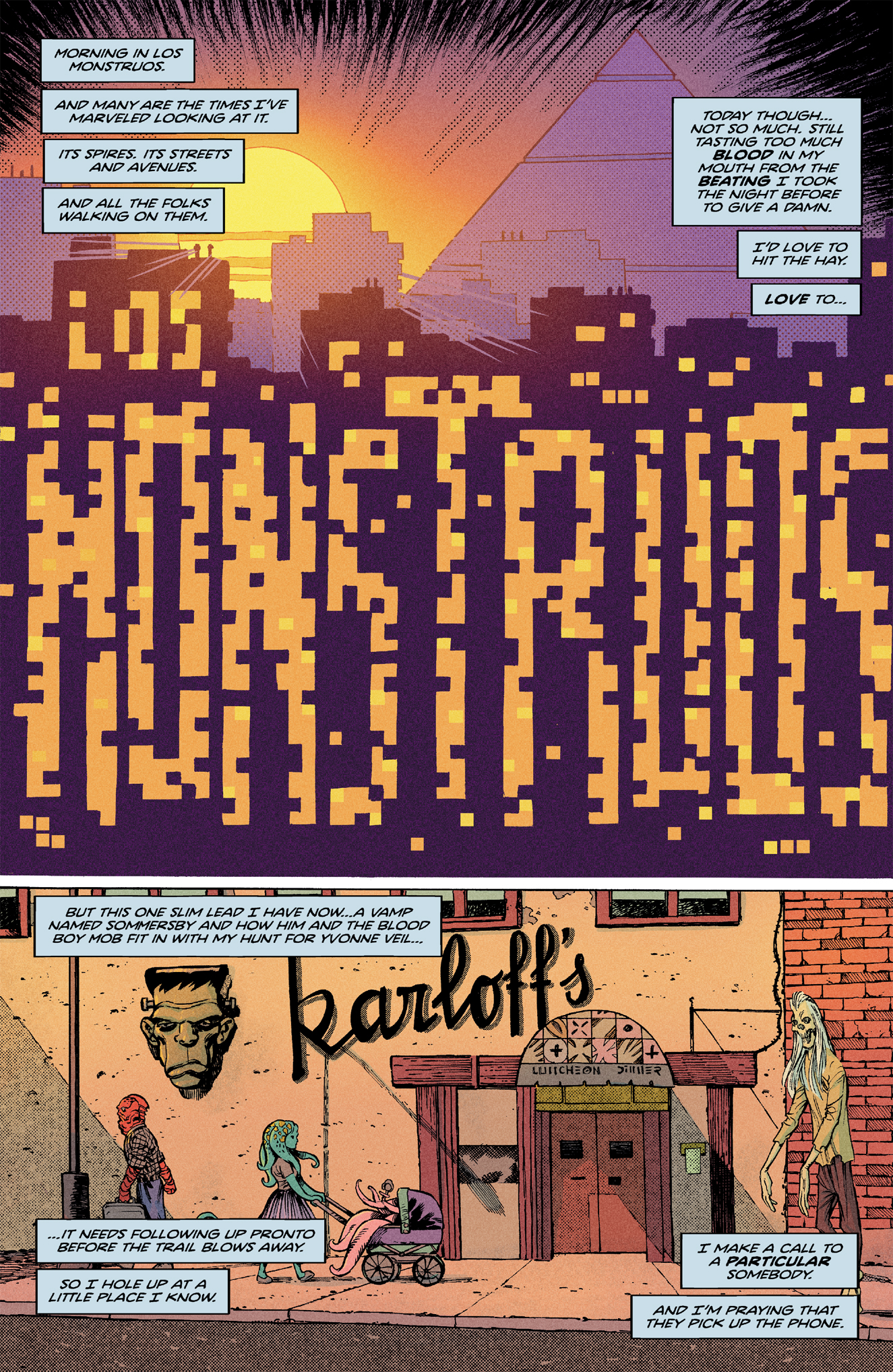 In the city of Los Monstruos, a place inhabited solely by classic monsters of fiction and film, werewolf P.I. Perry Cutter’s latest case has just gotten weirder and wilder. What began as a simple missing-person inquiry now includes a heartbreaking betrayal from Perry’s ex-partner as well as the hunt for a corrupt vampire ex-cop who may have the answers Perry needs. Does this mark the end of the case or the simply end of Perry Cutter? In a city like Los Monstruos it’s anyone’s guess.
