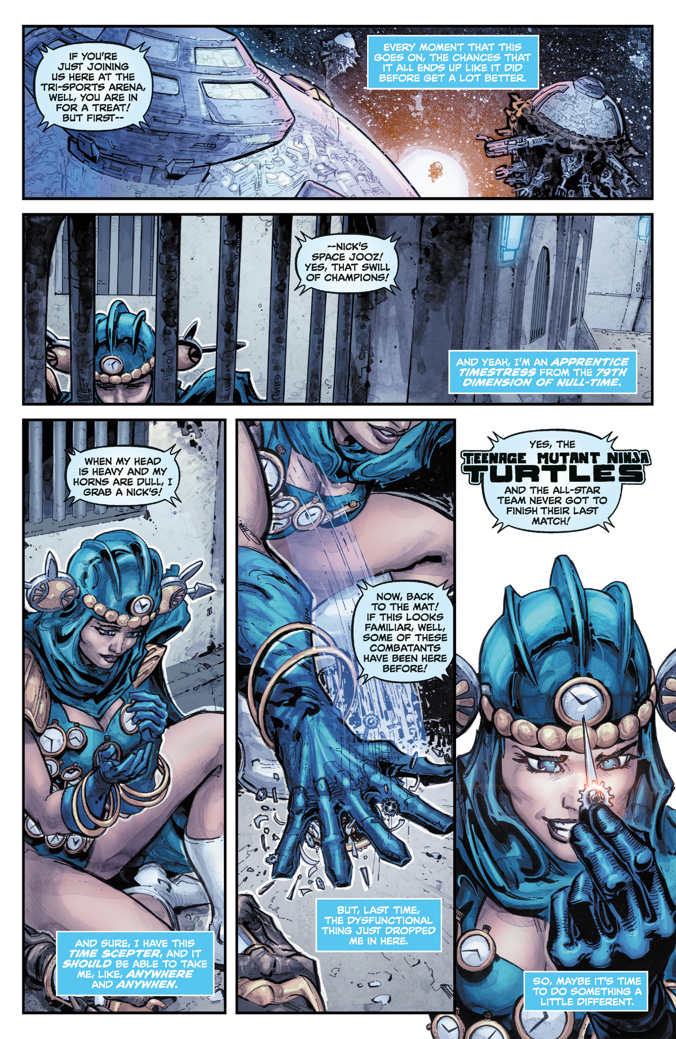 Renet is doing everything she can to stop the Teenage Mutant Ninja Turtle and He-Man universes from getting all tangled up, but they’re stuck in a time loop! And with He-Man and the Turtles on the Triceraton Homeworlds facing-off against the All-Star Team in the Tri-Sports Arena, things seem to be only getting worse...