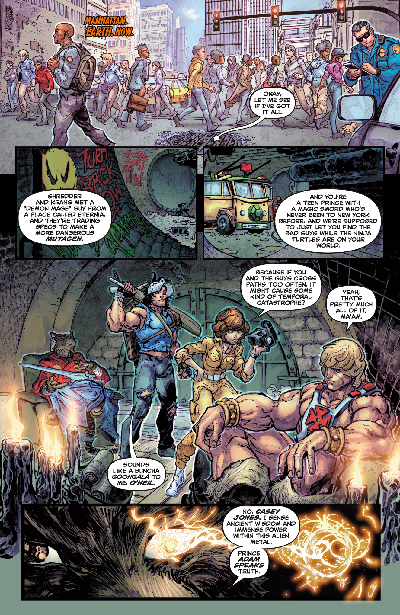 The Teenage Mutant Ninja Turtles and He-Man travel to one another’s universes in the hopes of untangling the Knot in the cosmos. But despite plans to avoid jumbling realties, they find themselves drawn to each other’s friends and allies. Meanwhile, timestress Renet has found herself in the past—smack-dab in the middle of the Foot Clan’s training dojo—where a mysterious student may have something to do with all this trouble . . .