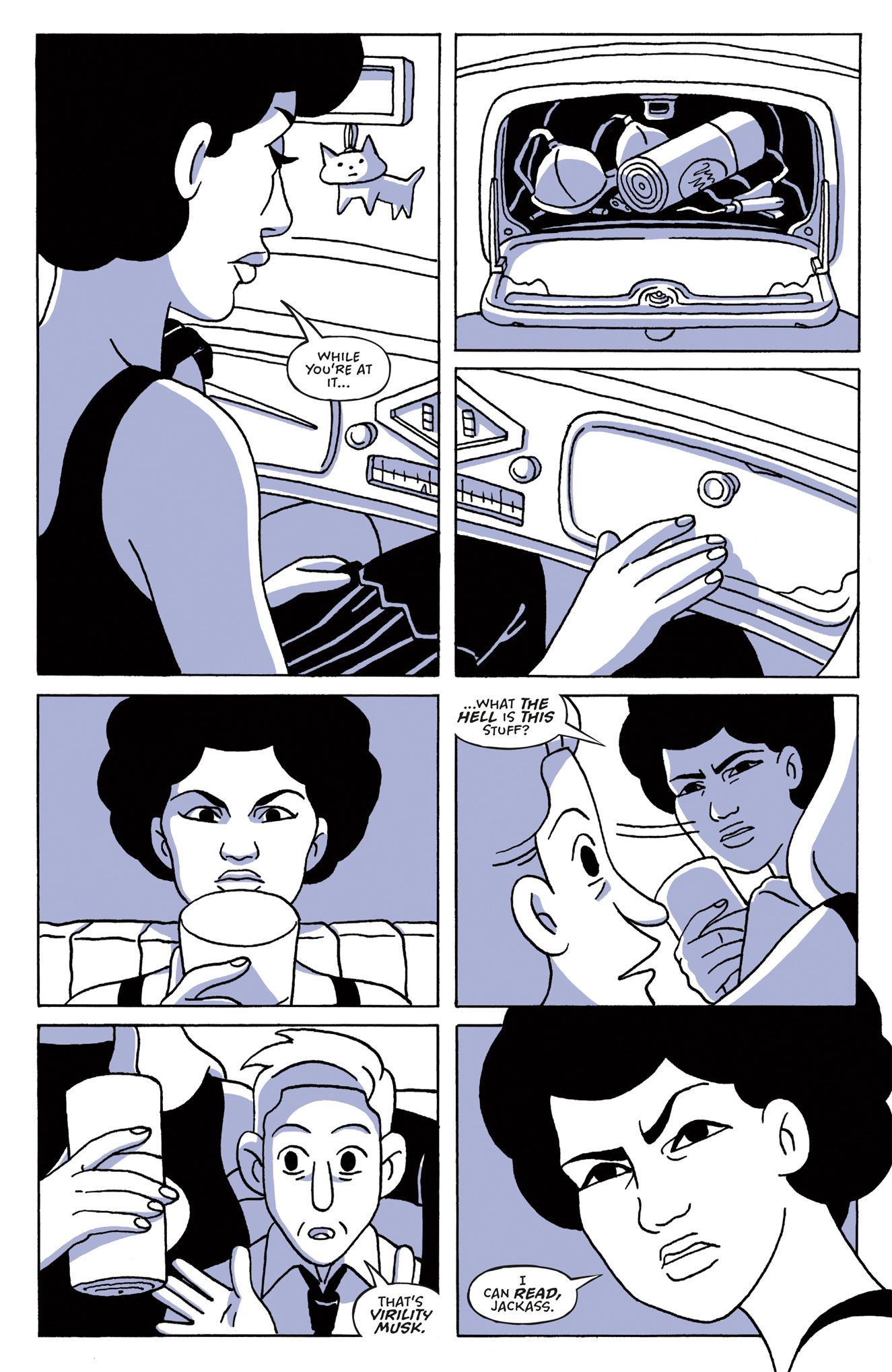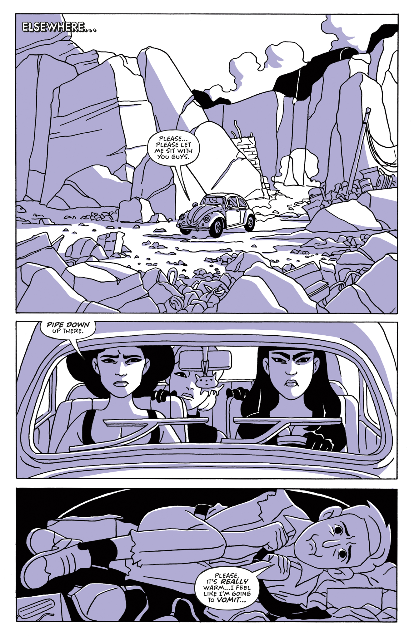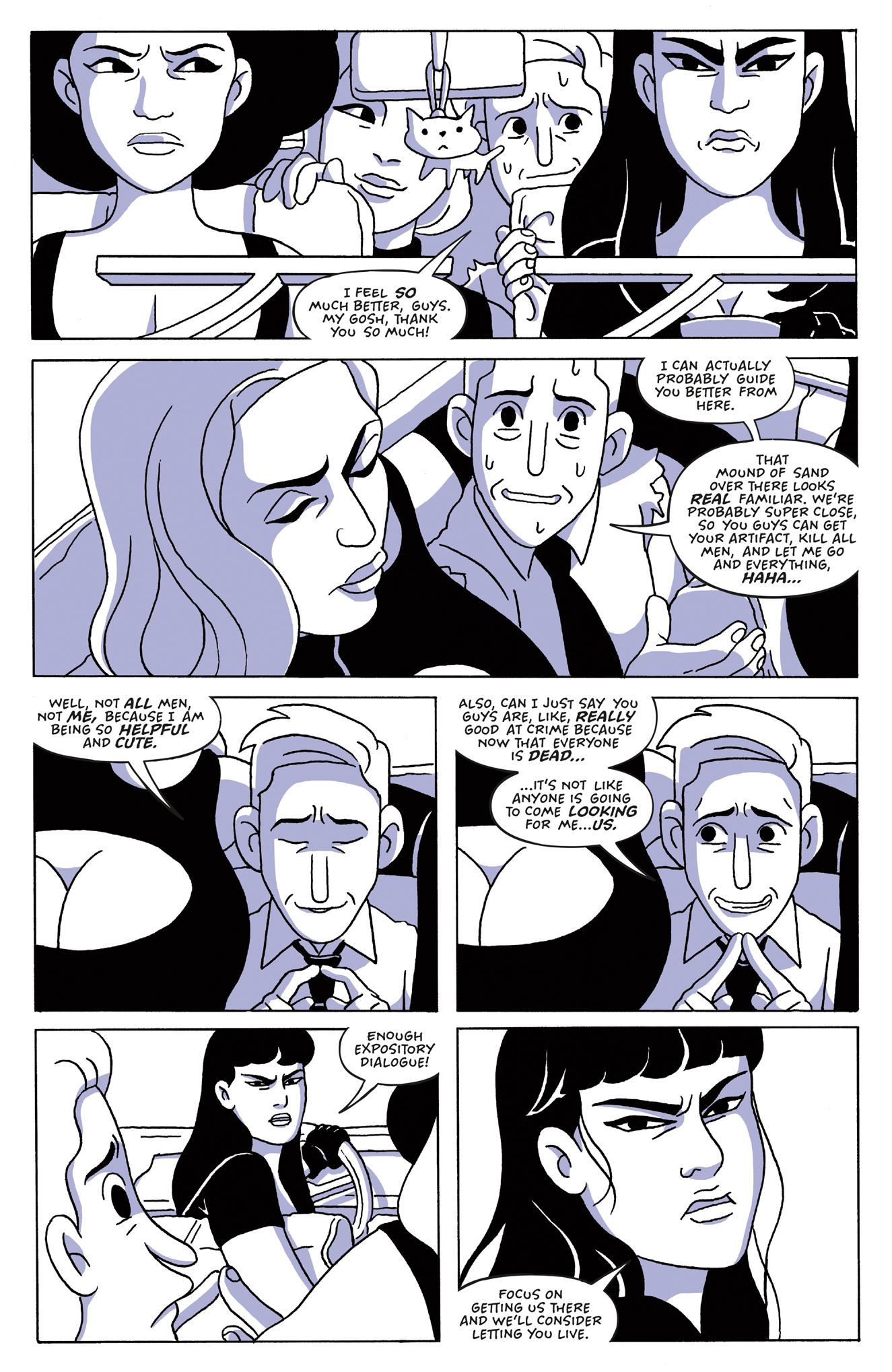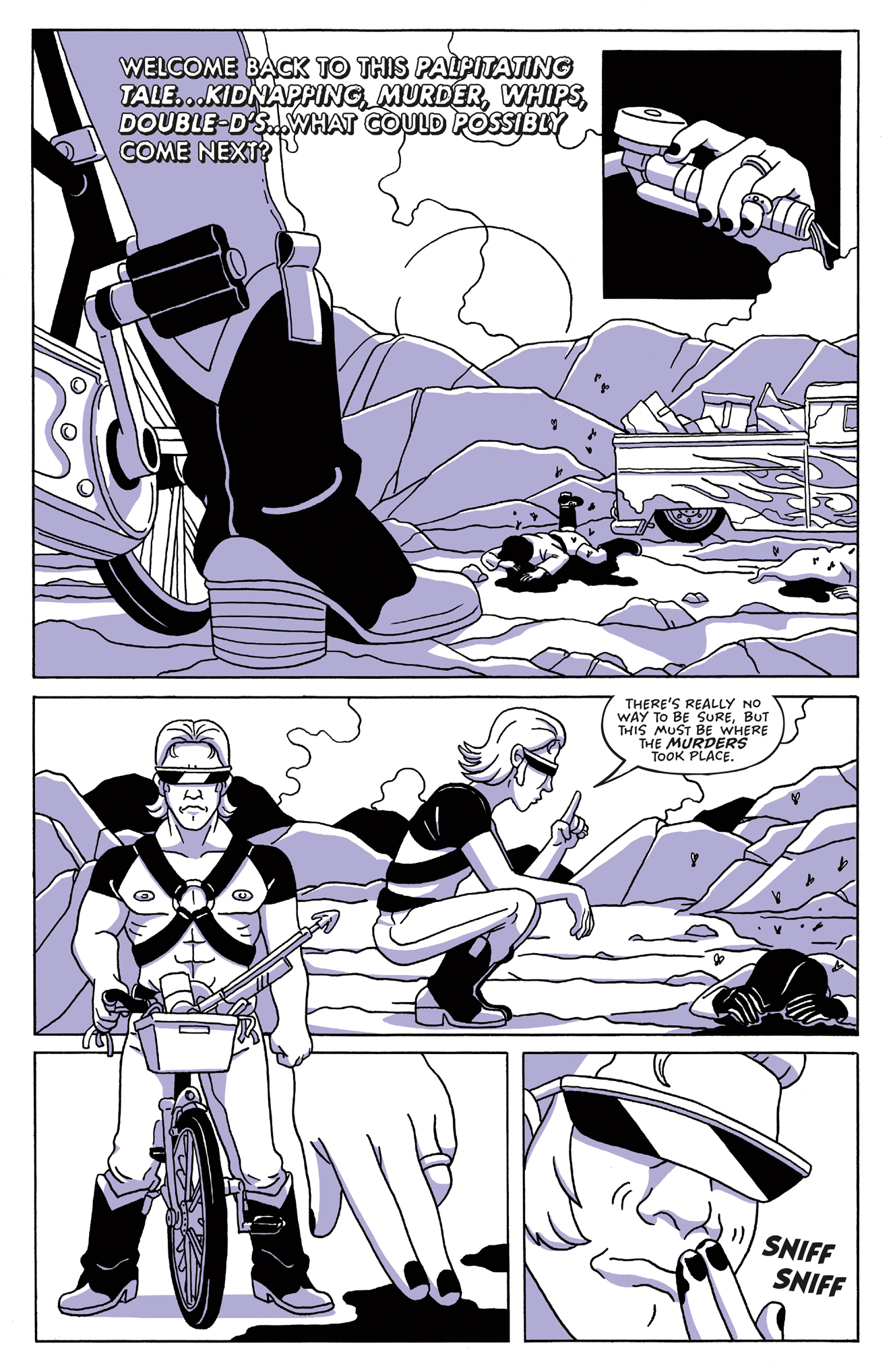 After their skirmish with the Manly Men Caravan, Baby, Belladonna, and Babette—along with their captive Cecil—head across the Nevada desert in search of a secret weapon that can end all men.