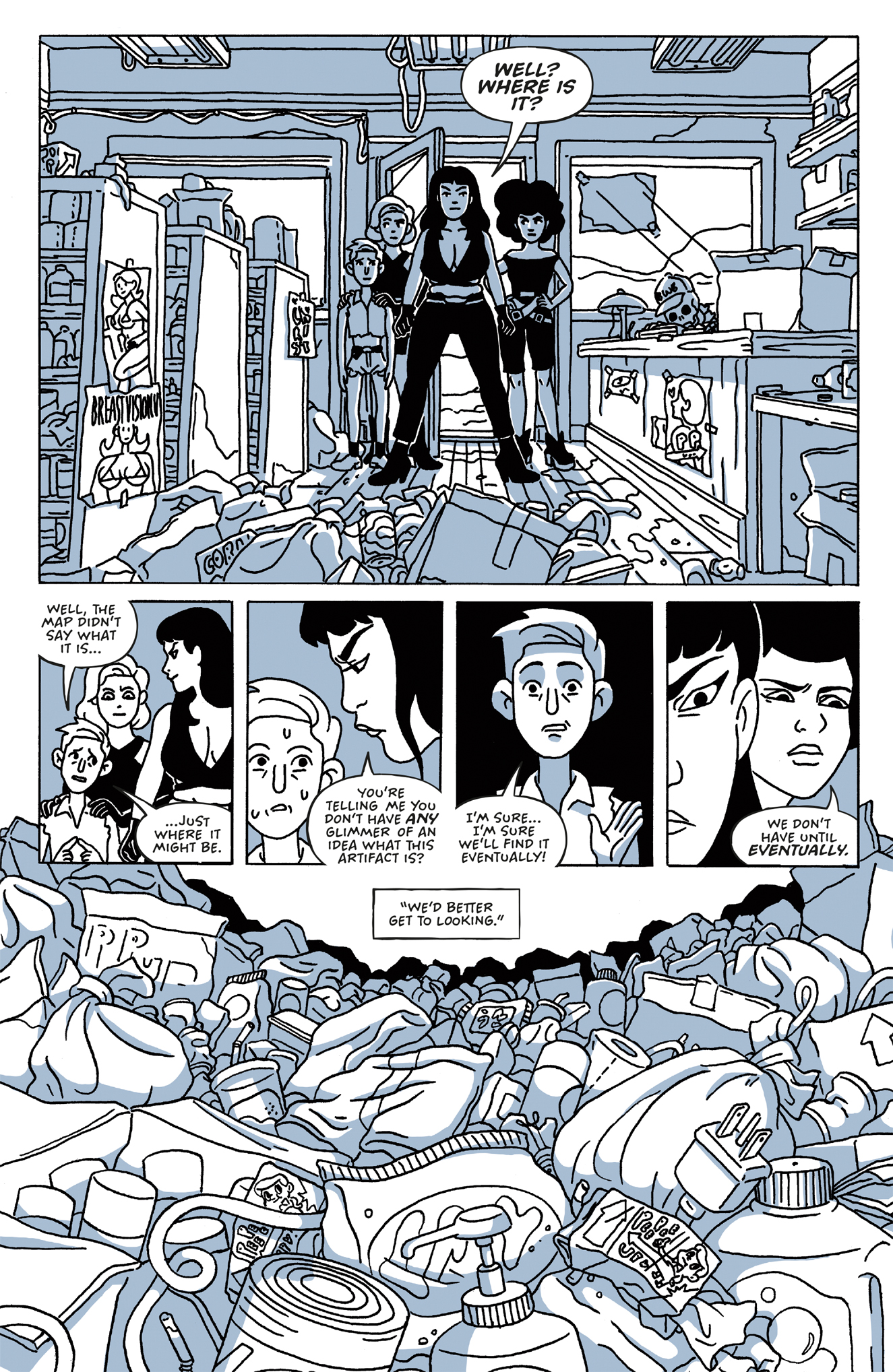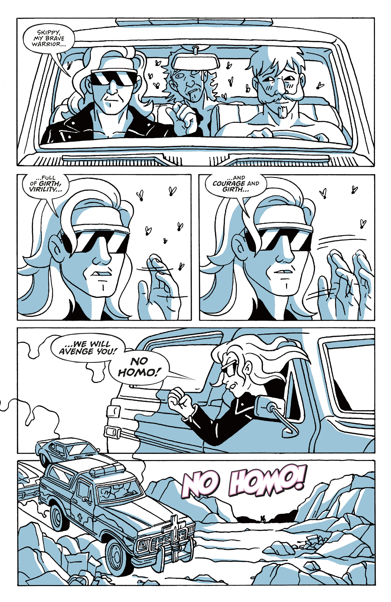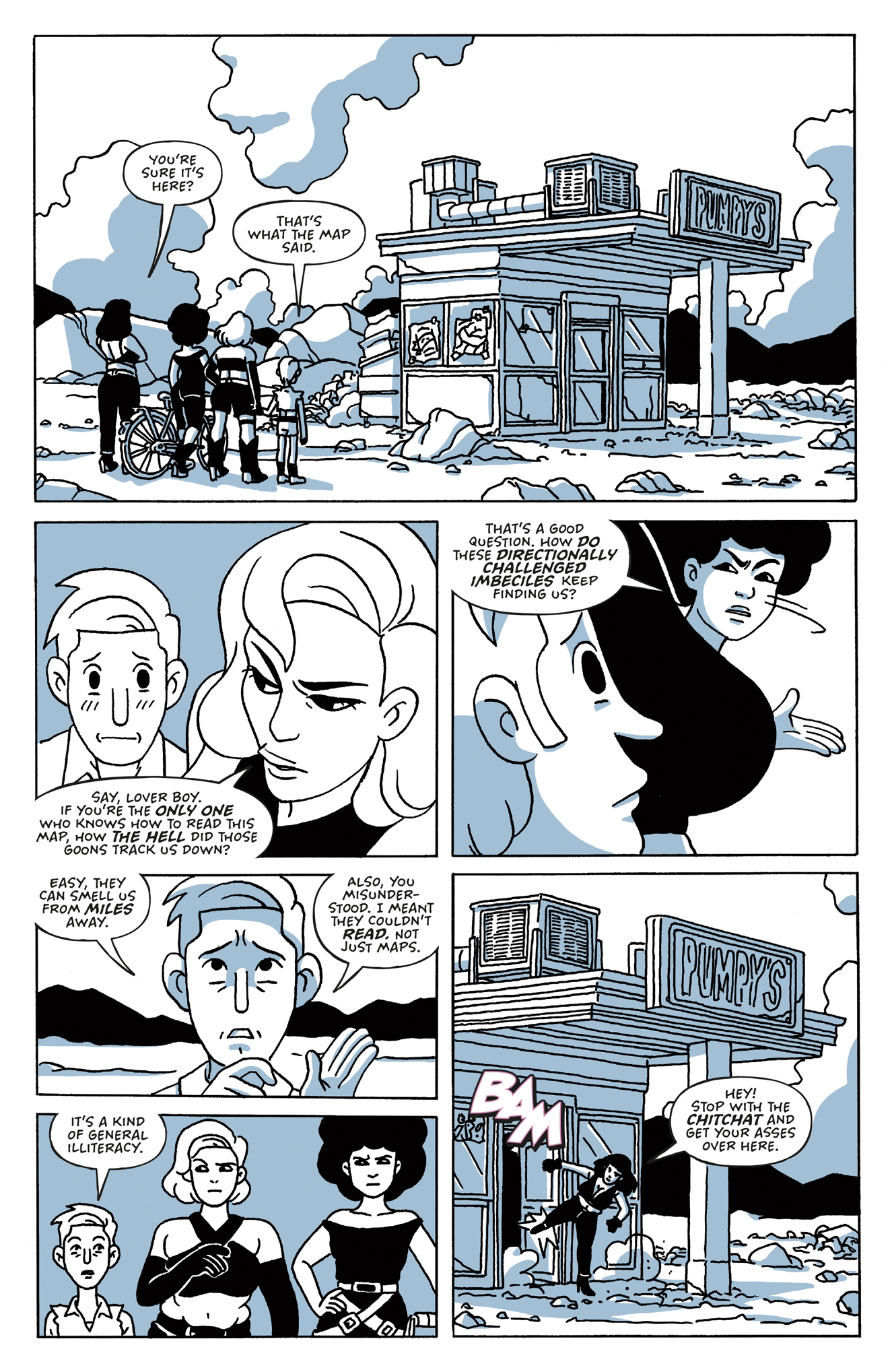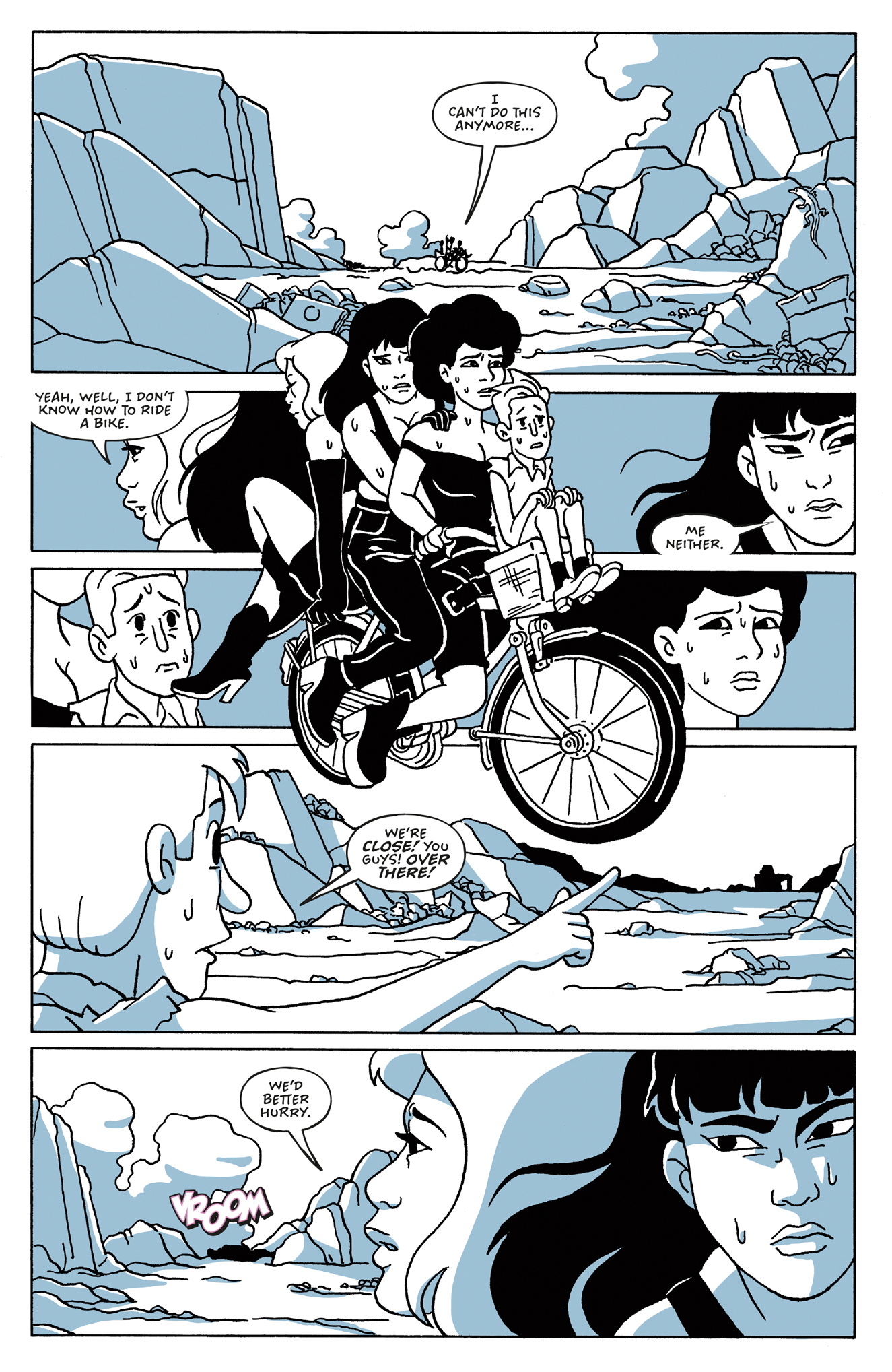 With nothing but the late Skippy’s bicycle to their name, the gang makes its way to the mysterious desert haven Cecil claims might hold their key to freedom. Tired, desperate, and with Quest Ragnor’s army closing in, the women must make some painful decisions if they want to achieve the gargantuan task of defeating patriarchal autocracy.