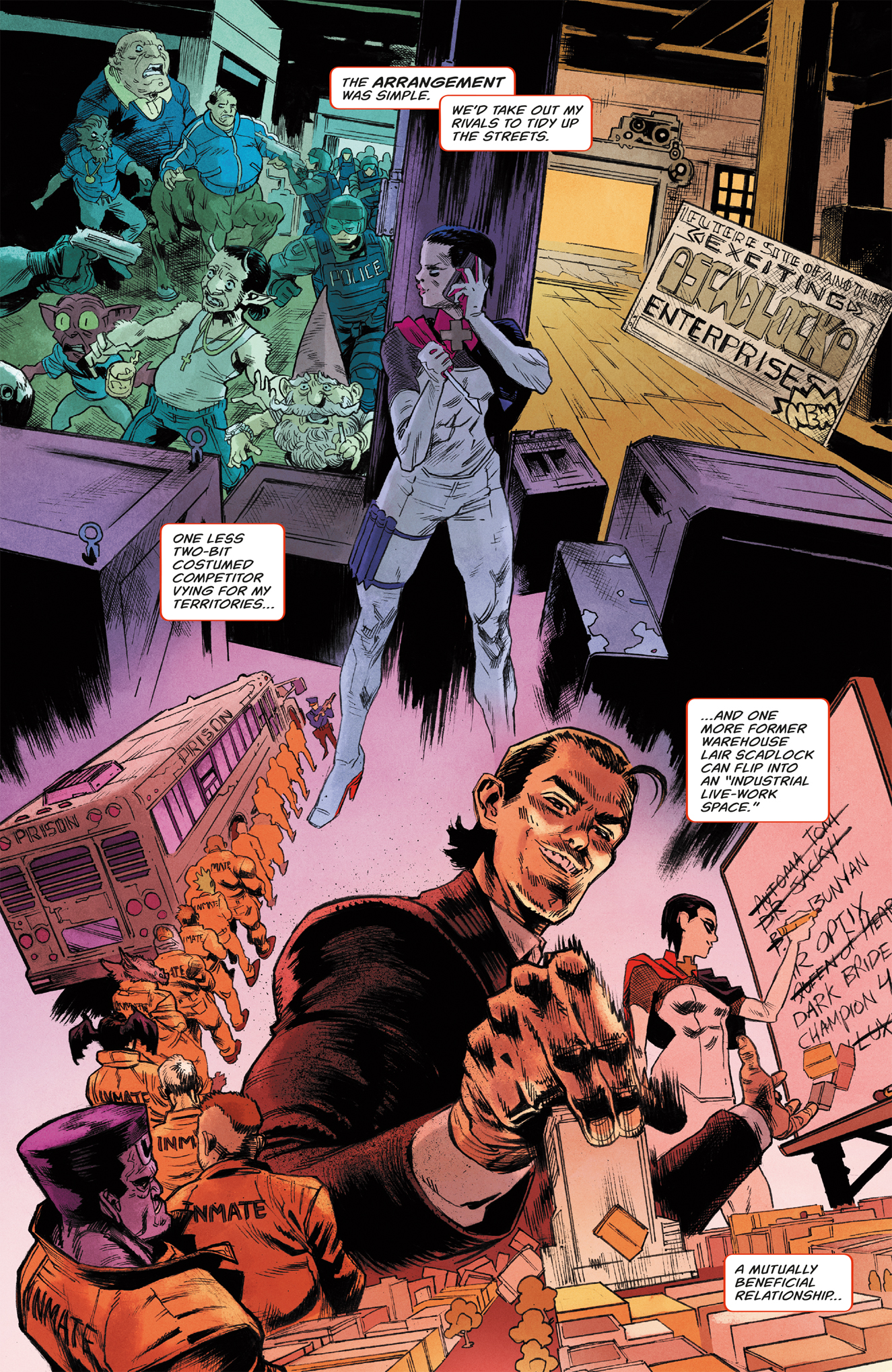 The hit superhero saga that’s Watchmen meets The Wire returns from Patton Oswalt and Jordan Blum, showrunners of Marvel’s M.O.D.O.K on HULU, and superstar artist Scott Hepburn (Tom Morello’s Orchid).