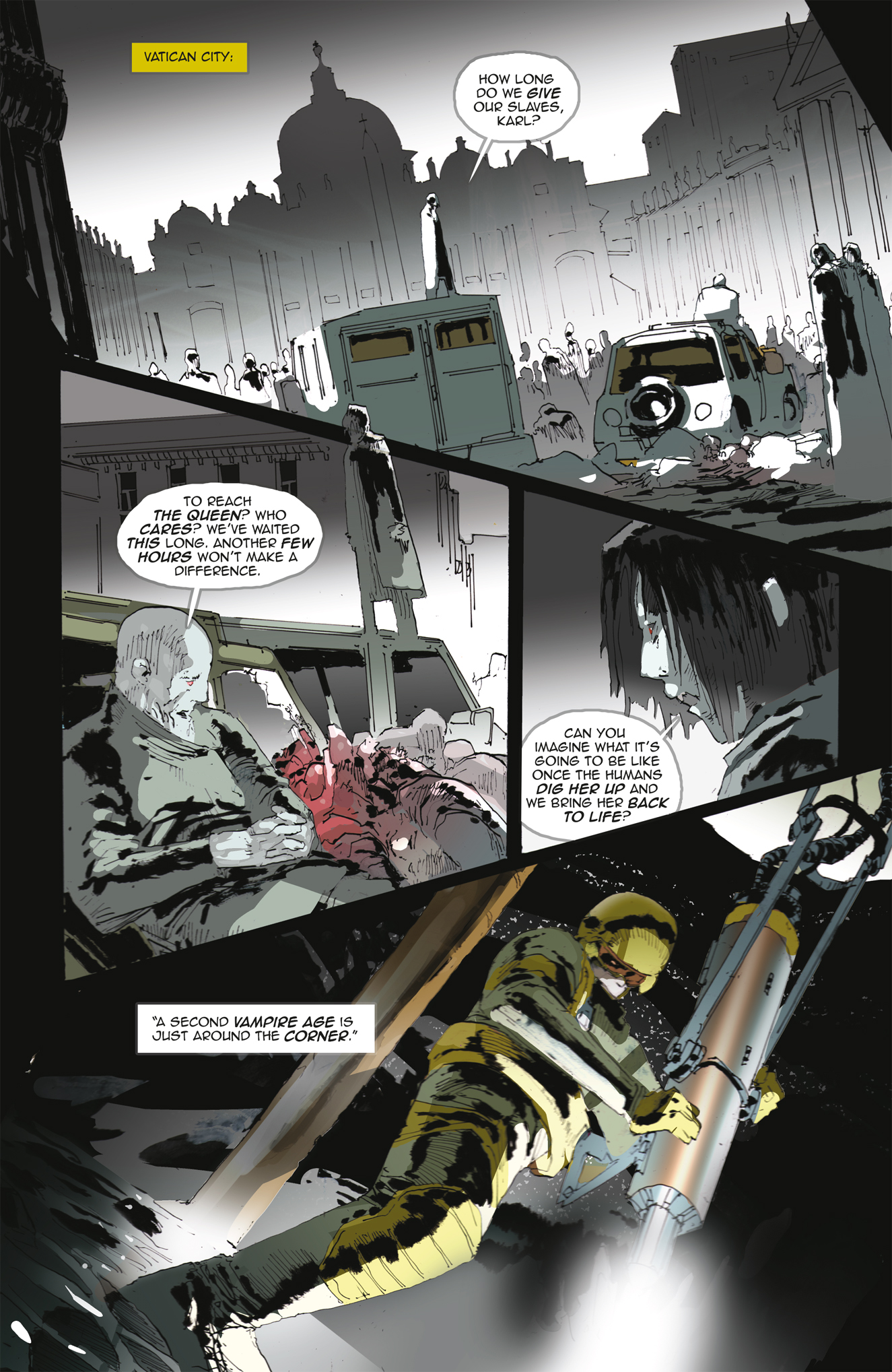 The siege continues with the last humans on Earth trapped behind the walls of Vatican City as billions of vampires wait outside, afraid of the holy relics. But something is buried beneath the Vatican itself and the vampires want it more than even the human blood inside.