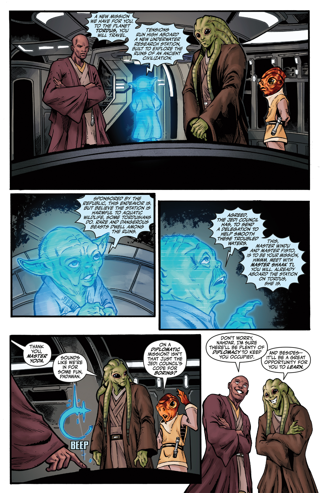 Jedi Master Kit Fisto has been sent to the ocean planet Torbus, alongside Mace Windu Shaak Ti, to investigate a controversial underwater research facility. But when disaster strikes, his diplomatic excursion quickly becomes a rescue mission! Kit Fisto and his fellow Jedi must race against the clock to save innocent lives from the hungry leviathans that circle in the depths.