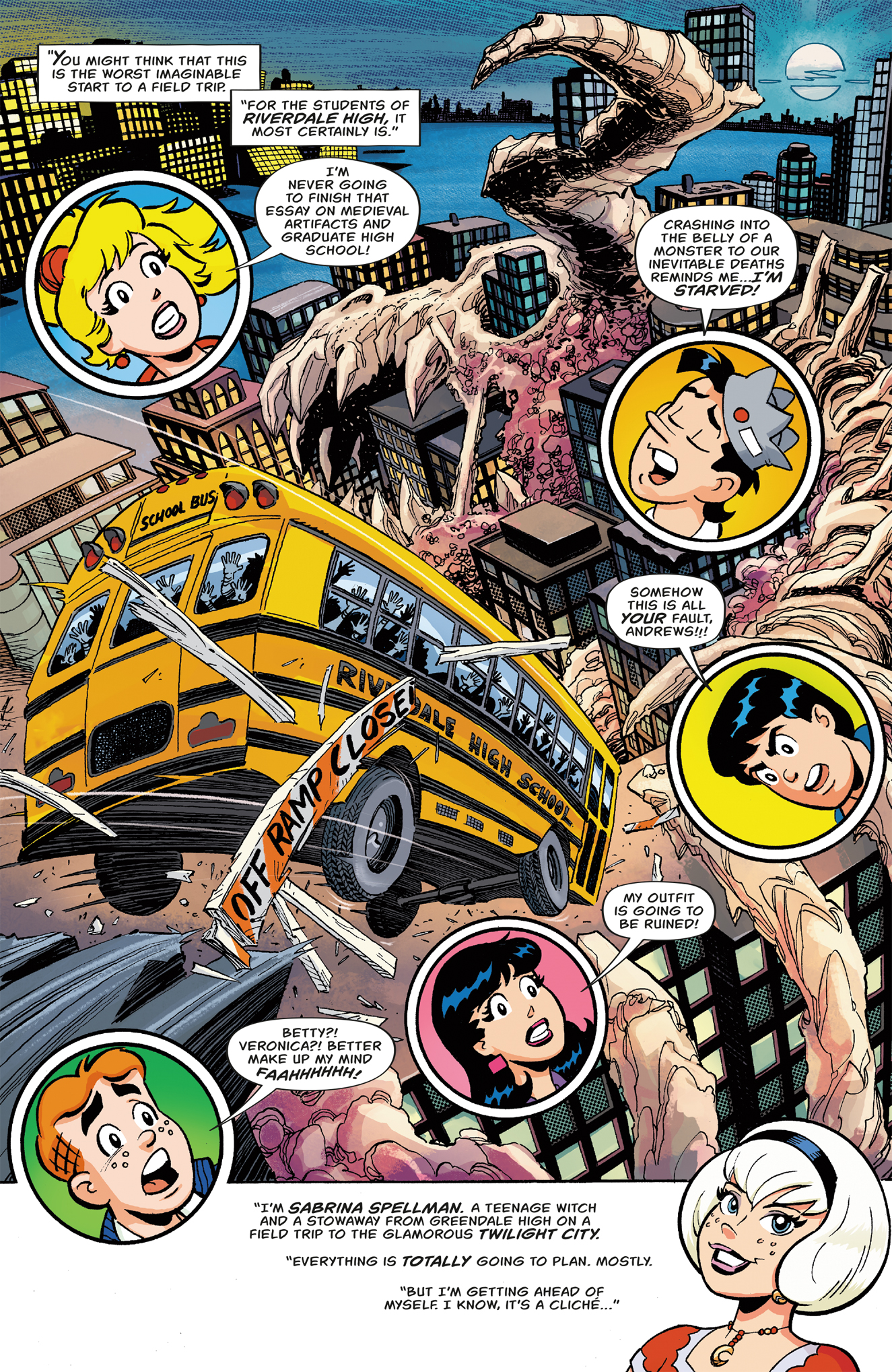 ARCHIE, BETTY, VERONICA, JUGHEAD and friends are on on their way to a field trip to Twilight City when the magical meddling of SABRINA THE TEENAGE WITCH lands them in the seedy underbelly of Redport, the most villainous part of town controlled by Frankie Follis AKA PLAYTIME and her gang of MINOR THREATS. Archie and the others suddenly find themselves drafted into both sides of the war Playtime is waging against magic users in her turf. One thing is for sure . . . blood and milkshakes will be spilled!