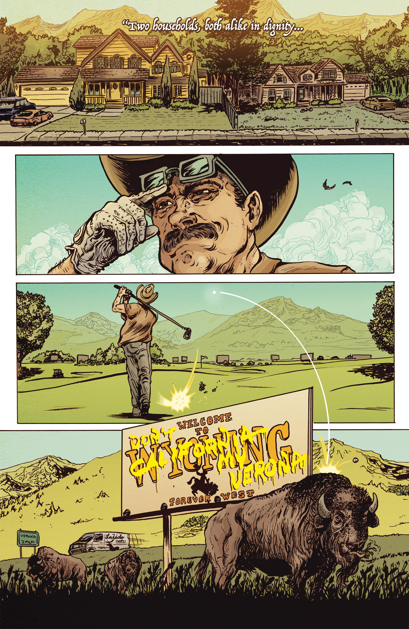A tale of two totally normal, completely damaged families in a world of corrupt businesses, inept local politicians, bungling criminals, and unfortunate leisurewear. We follow the fortunes of two neighbors on the point of collapse: a Mormon hit man and a gambling-addict lawyer, both intertwined in a real-estate deal gone wrong. Mix in a Mexican beauty queen on the run from her past, two escaped convicts in love, a Wall Street billionaire who has become a cowboy, and a maniac hell-bent on revenge. American culture has become a war about real estate, violence, and snake oil.