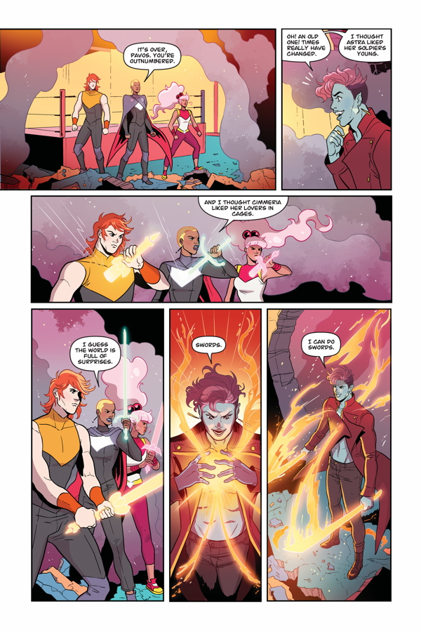 It's the final showdown between the Zodiac Starforces and the demon Pavos! The US and UK teams must set aside their differences to defeat the demon, but a surprise attack leaves them reeling . . . and one member down.
