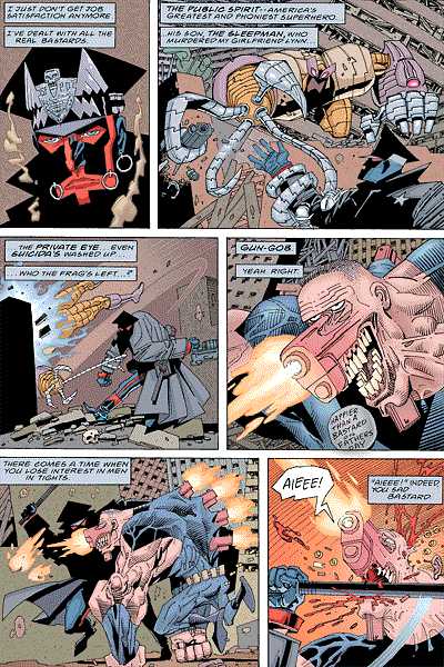 Two of the most outrageous characters to grace the comics medium face off in future San Francisco. Marshal Law, fresh from his adventures with the Savage Dragon, is ready to give up his war against superheroes. But when his most hated enemy, the Sleepman who murdered his girlfriend, gets a hold of the Mask and unleashes murder and mayhem across the Bay, Law has to get back to his old tricks. It's not a question of which one of them will survive, so much as whether or not anyone else in Northern California will!