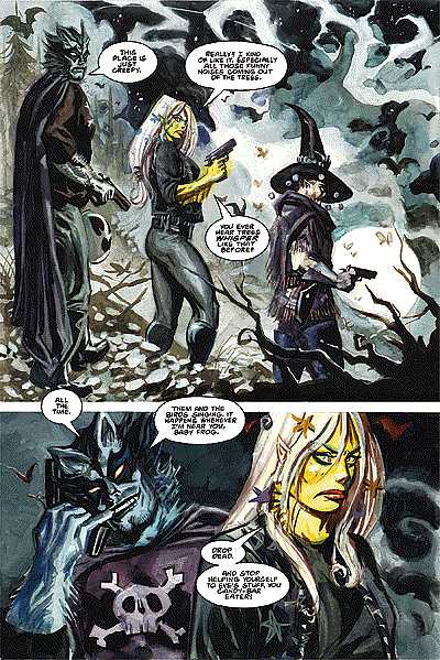 Collecting the horror/adventure tale from Dark Horse Presents, in color for the first time, Witching Hour features eight new pages of story, as well as plenty of extra goodies. Halloween Girl and her guardian, Gunwitch, go searching for the farthest outpost of trick-or-treating and end up running into an evil witch and her pumpkin-headed minions! Painted by Dan Brereton (Thrillkillers '62), with new pin-ups by Mike Allred, Mike Mignola, Art Adams, Jay Stephens, Andi Watson, and Paul Smith!