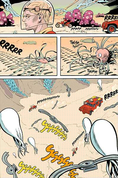 Six adventurers descend to a vast underground world to bring back alien technology worth a fortune. But first they must survive. Creatures, machines, and things you wouldn't believe are down there. Paul Chadwick (Concrete) delivers rip-roaring SF adventure with a quirky psychological edge. This one's off-center; not quite what you'd expect. Standout qualities: complete, single-issue stories (!); Silver Age-style storytelling covers; and a parade of bizarre creatures that would make Basil Wolverton smile.