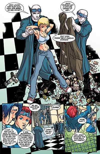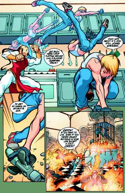 SpyBoy and former school bully Butch are trapped in a cage high above a vat of sizzling fry grease in The Gourmet's secret lair! Things couldn't look bleaker for our new young hero, which means his spy career could be over before it starts. Over, that is, unless his cute, new ally Bombshell can save his bacon! But even this super-spy babe may be outmatched against The Gourmet. Who can save them? Wouldja believe another super-spy who "retired" long ago? Wouldja believe . . . SpyBoy's dad ?!?!