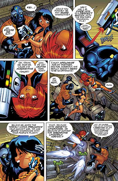 In this full-color one-shot (pardon the phrase), deadly but disaster-prone agents Kei and Yuri attempt to free a cyborg political prisoner from a repressive military regime. Needless to say, high-tech mayhem and wackiness ensue. Bonus: Learn the secret of Kei's mesmerizing "Hypno-Butt," as well as the correct pronunciation of the word "Junta"! Collects in glorious full color the black-and-white story serialized in Dark Horse Presents #132-134. Cover art by Adam Warren. (Also available with cover art by Jason Pearson).
