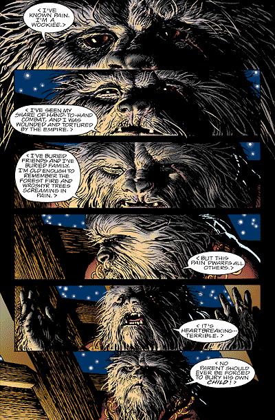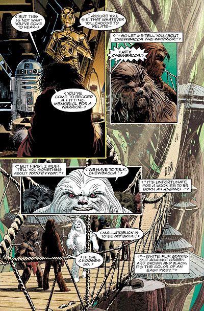 Dark Horse proudly releases a series detailing, for the first time ever, the history of the galaxy's greatest Wookiee! Each issue will feature several chapters, each illustrated by a different artist, featuring the greatest tales of Chewbacca, narrated by the characters who know him best! This special first issue features stories narrated by Mallatobuck, Chewbacca's wife, and Attichitcuk, Chewbacca's father. Later issues will feature Luke Skywalker, Lando Calrissian, Princess Leia, Han Solo (of course!), and many more! No true Star Wars fan can be without this series-so don't be left behind!