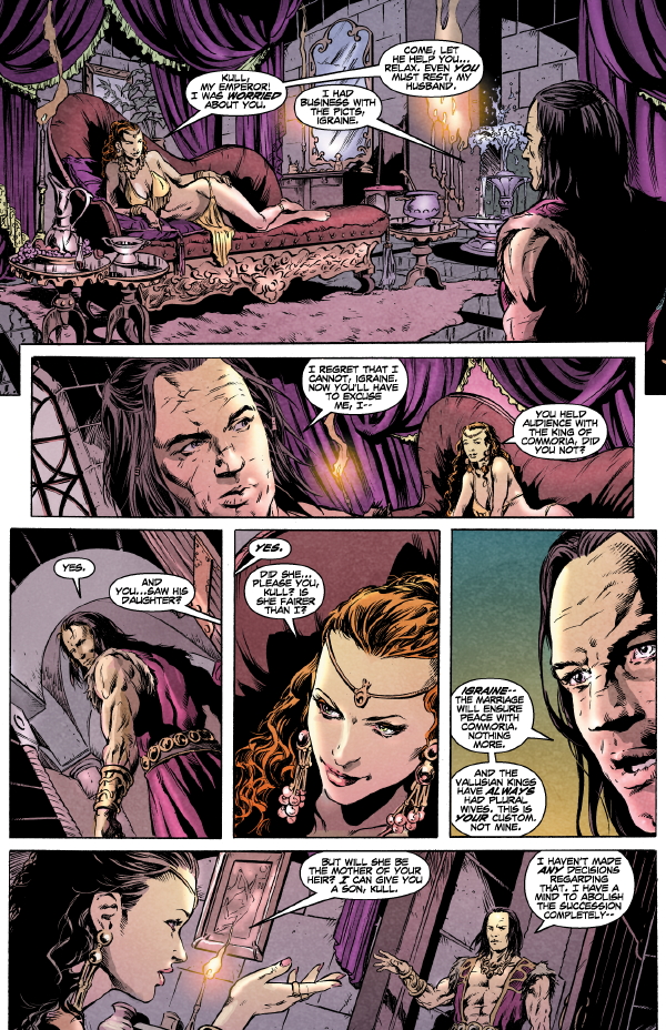 AN: Yeah, absolutely. Kull is a licensed character. The guys at Conan Properties have expectations, Dark Horse has expectations, and most of all, readers have expectations. My job writing Rex Mundi is . . . writing Rex Mundi. My job writing Kull is satisfying expectations and writing action-packed stories. Kull's character is less established than Conan's, so I have to make some interpretive decisions. But the goal is always staying true to Howard.