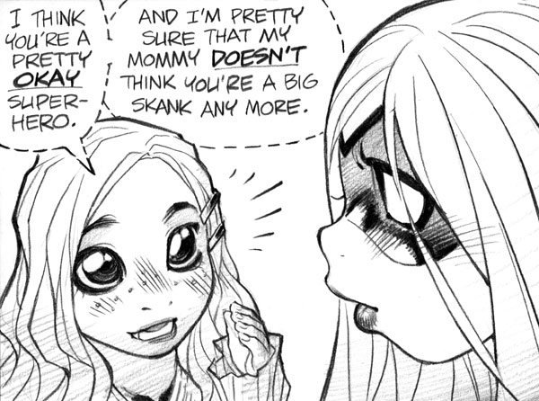 That being said, if fetishistic frivolity (of any variety) were the sole subject of Empowered, I would long ago have stopped work on the title . . . As in, three or four volumes ago. The property has spawned an ever-burgeoning host of characters and situations that I find compelling and narratively intriguing, which is why I bother to keep the book rolling along.