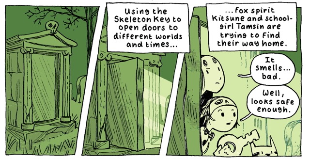 The magical Skeleton Key turns any door into a portal to an endless variety of strange worlds and times. Lost in this multiplicity of dimensions, Canadian schoolgirl Tamsin and Japanese fox spirit Kitsune are trying to find their way home.