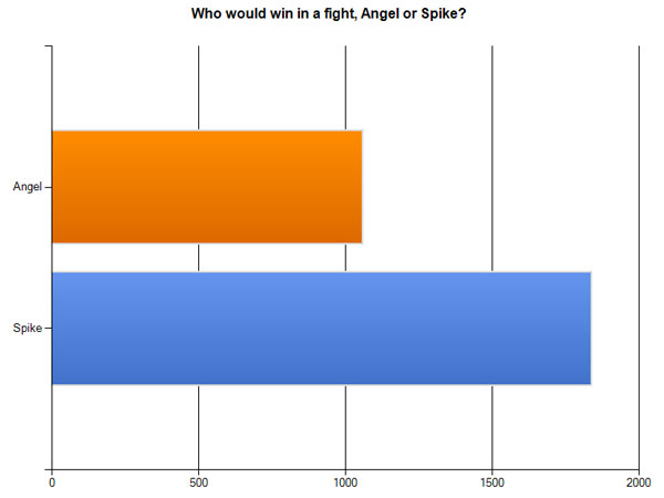 Well folks, the votes are in and the people have spoken. While both contenders have their equal merits (brooding, ability to wear sweet trench coats) there can be only one winner, and after 30 days you, the fans, have voted the peroxide-haired Spike as the unequivocal winner of our Angel Vs Spike contest! Congrats Spike fans, better luck next time Angel fans.