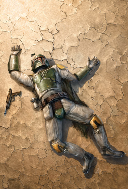 "Boba Fett is dead. The most infamous hunter in the galaxy has been hunted. He's lying, broken, on the desert floor. He's more blaster-holes than man. It's the ultimate ending. However, this is just the start of our story. With the fall of Fett broadcast across the galaxy, someone rises to avenge him. But who would care about the death of a man like Fett? Bounty hunters aren't exactly known for their enduring, close friendships but even a man like Boba Fett has family... and now a Blood Tie demands blood." -Tom Taylor