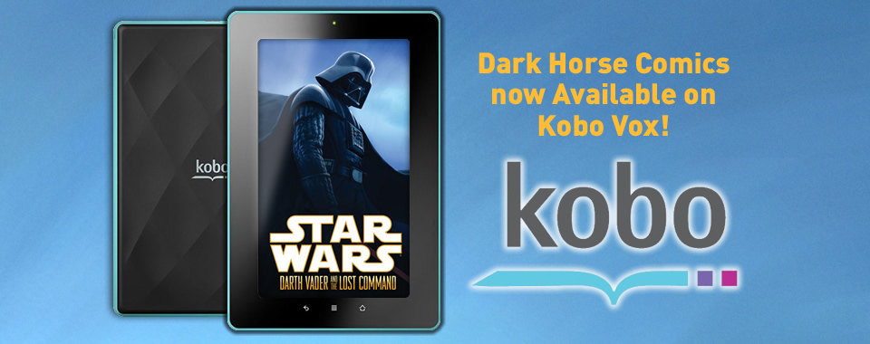 Dark Horse continues to make headlines today, with news that the company’s best-selling titles are going beyond the iOS platform! Now, the largest independent publisher of graphic novels is pleased to announce a partnership with the top-selling eReading company, Kobo, to offer a library of nearly 100 titles available from Kobo.com to be read on the Kobo Vox eReader! This move follows an incredibly successful year of distributing titles digitally through Dark Horse’s proprietary iOS app, and corresponding digital storefront at Digital.DarkHorse.com.