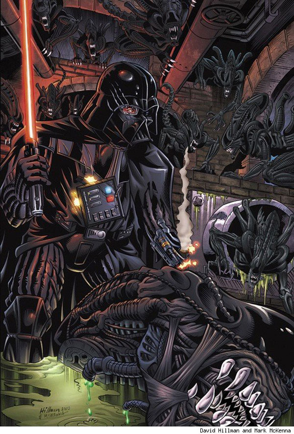 As always, thanks for checking in for another installment of "Dark Horse in the Headlines." Same time next week! Be there! Till then, please enjoy this "Darth Vader versus Aliens" image (by David Hillman and Mark McKenna) nabbed from Comics Alliance. May the Force be with you!