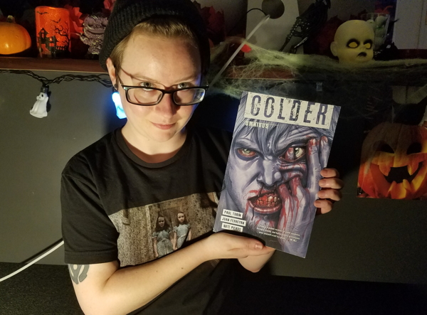 "Colder is a series that sits with you, I mean really sits with you. The first time I saw the cover (first used in issue #1), I couldn’t get it out of my head. Don’t get me wrong, I absolutely love all things creepy and unsettling, but something about the anatomical impossibility of Declan’s hand in his face achieves a level of macabre specificity that perhaps only Juan Ferreyra can pull off. That intensity and feeling of unsettling incomprehension continues throughout the rest of the series—from Nimble Jack's expressive malevolence to Swivel’s chilling “hobby,” the monsters that Paul Tobin creates are masterfully twisted and the ingenuity of the plot makes Colder a must-read series every spooky season." -Rikki, PrePress Technician