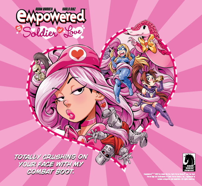 Whether you're crushing literally or metaphorically, The Soldier of Love is in your corner. At least for today. Next week, she wreaks havoc on the hearts of the citizens of Cape City when Empowered and the Soldier of Love #1 hits comic stands!