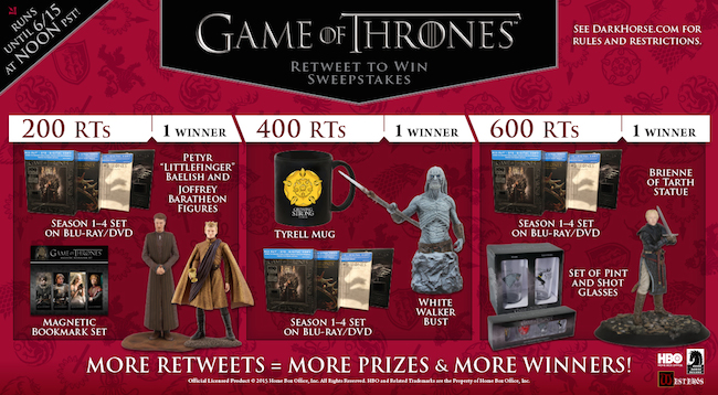 DARK HORSE GAME OF THRONES SEASON 5 FINALE RT SWEEPSTAKES