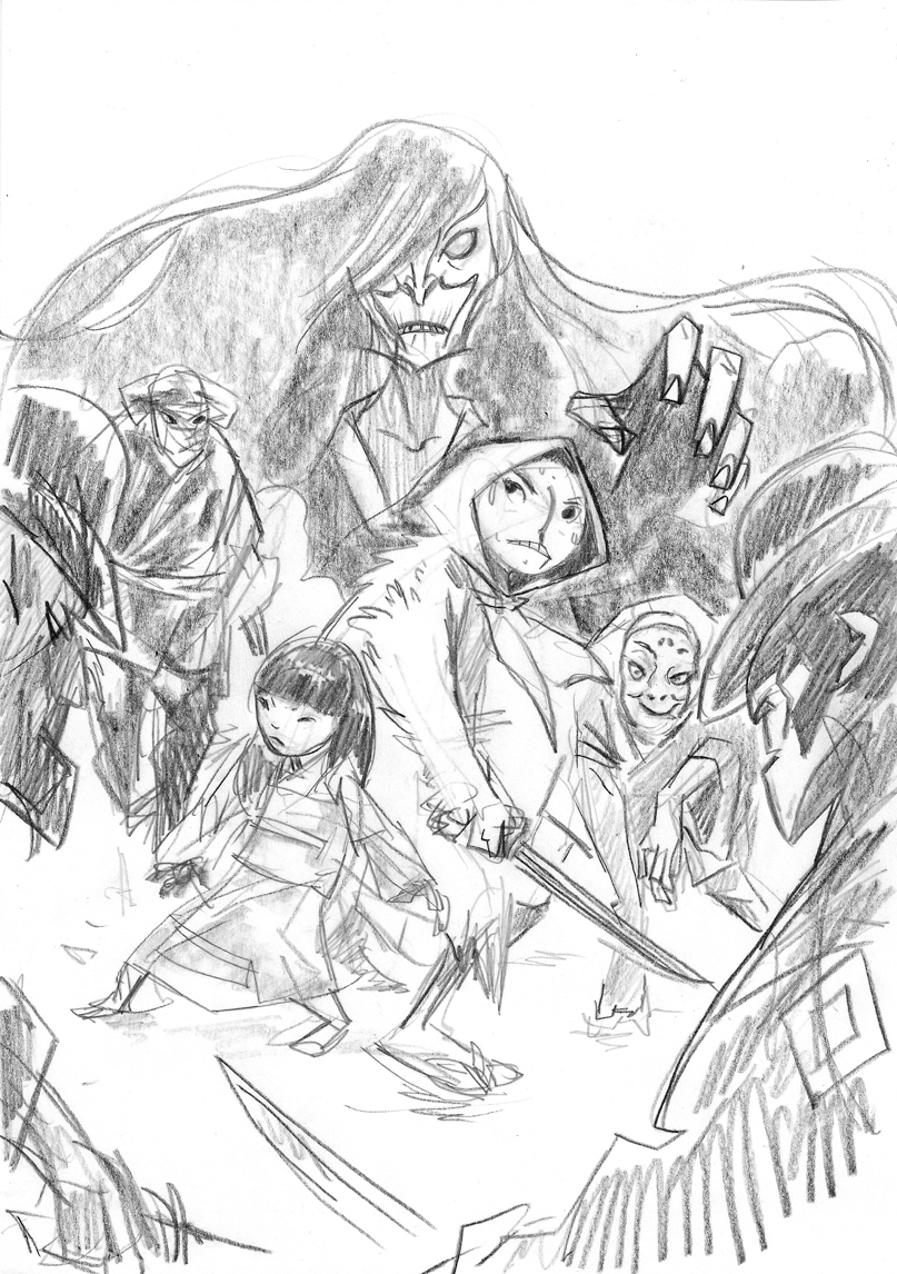 Working on Ningen’s Nightmares was a big challenge; I can’t lie. I put way too much pressure on myself during the art process. I wrote the script in French, then in English, then I got feedback, then I revised the script, and then I got more feedback! It was the complete opposite of my approach with 365 Samurai, when I was working on the story on my own! The only feedback I had was from some close friends who read the story and told me, “Yes, it’s great! I like the way you draw that scene.” It’s nice to get that kind of response…but you don’t learn anything. You don’t get out of your comfort zone.