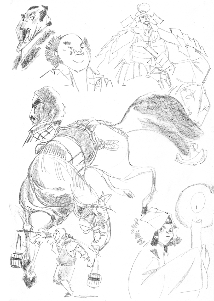 JP: The challenge was to write a new story for readers that could be read independently of my previous Dark Horse book, 365 Samurai and a Few Bowls of Rice, but was also linked to the same universe. The format was also a challenge, as it was not a panel per page, as I am used to, but a traditional comic book with panels that US readers are more used to seeing and reading.