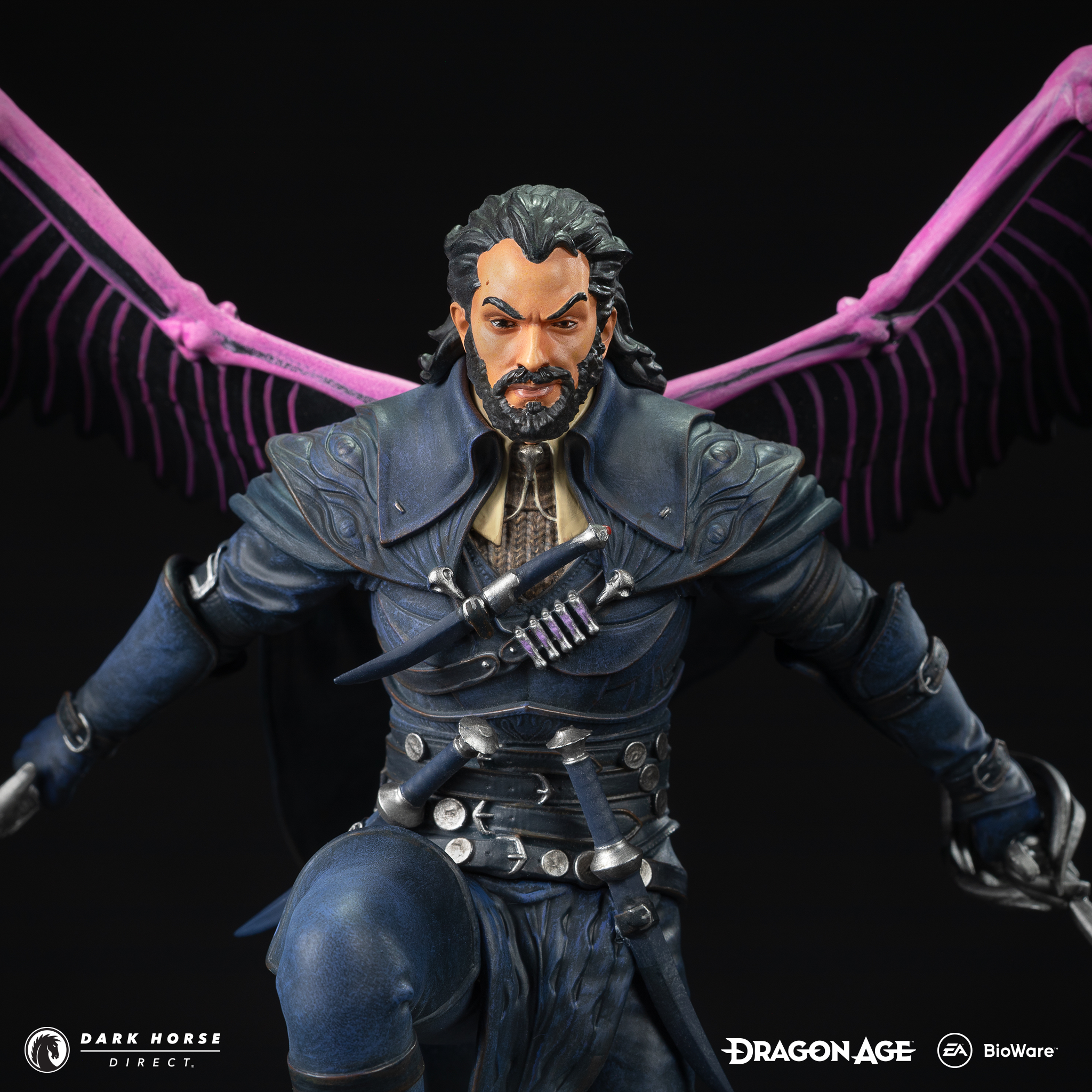Dark Horse Direct and BioWare are stepping into the shadows of Antiva with the Dragon Age: The Veilguard - Lucanis Dellamorte Statuette. Also known as the Demon of Vyrantium, this master assassin is ready to strike swiftly and silently as he is depicted mid-stride, wielding his God’s Foil rapier and Crowkeeper dagger. In his line of work, Lucanis often finds himself unwelcome when “paying someone a visit,” but this new statuette is expected to be a very welcome addition to the collections of Dragon Age fans when it arrives in 2026.