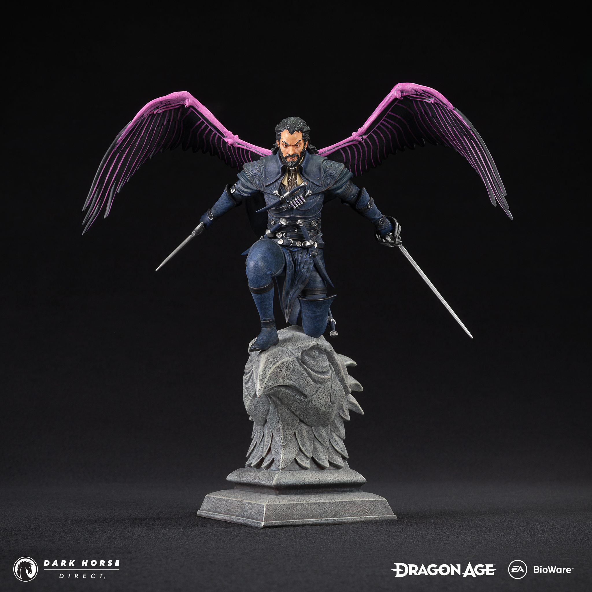 Dark Horse Direct and BioWare are stepping into the shadows of Antiva with the Dragon Age: The Veilguard - Lucanis Dellamorte Statuette. Also known as the Demon of Vyrantium, this master assassin is ready to strike swiftly and silently as he is depicted mid-stride, wielding his God’s Foil rapier and Crowkeeper dagger. In his line of work, Lucanis often finds himself unwelcome when “paying someone a visit,” but this new statuette is expected to be a very welcome addition to the collections of Dragon Age fans when it arrives in 2026.