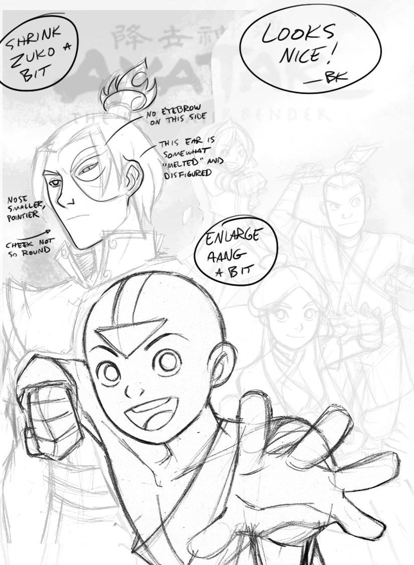 The creators of Avatar: The Last Airbender, Bryan Konietzko and Michael Dante DiMartino, chose their favorite sketch and Bryan sent some helpful notes for Gurihiru.