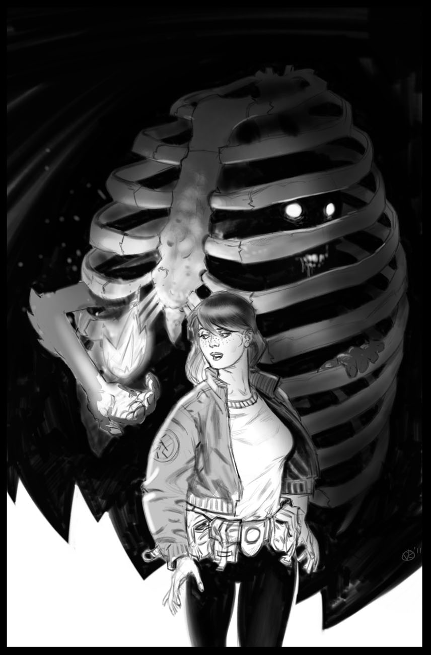 In the second sketch I went for a pure, classic action shot. Mike and Scott liked it for the second cover, so I kept it.