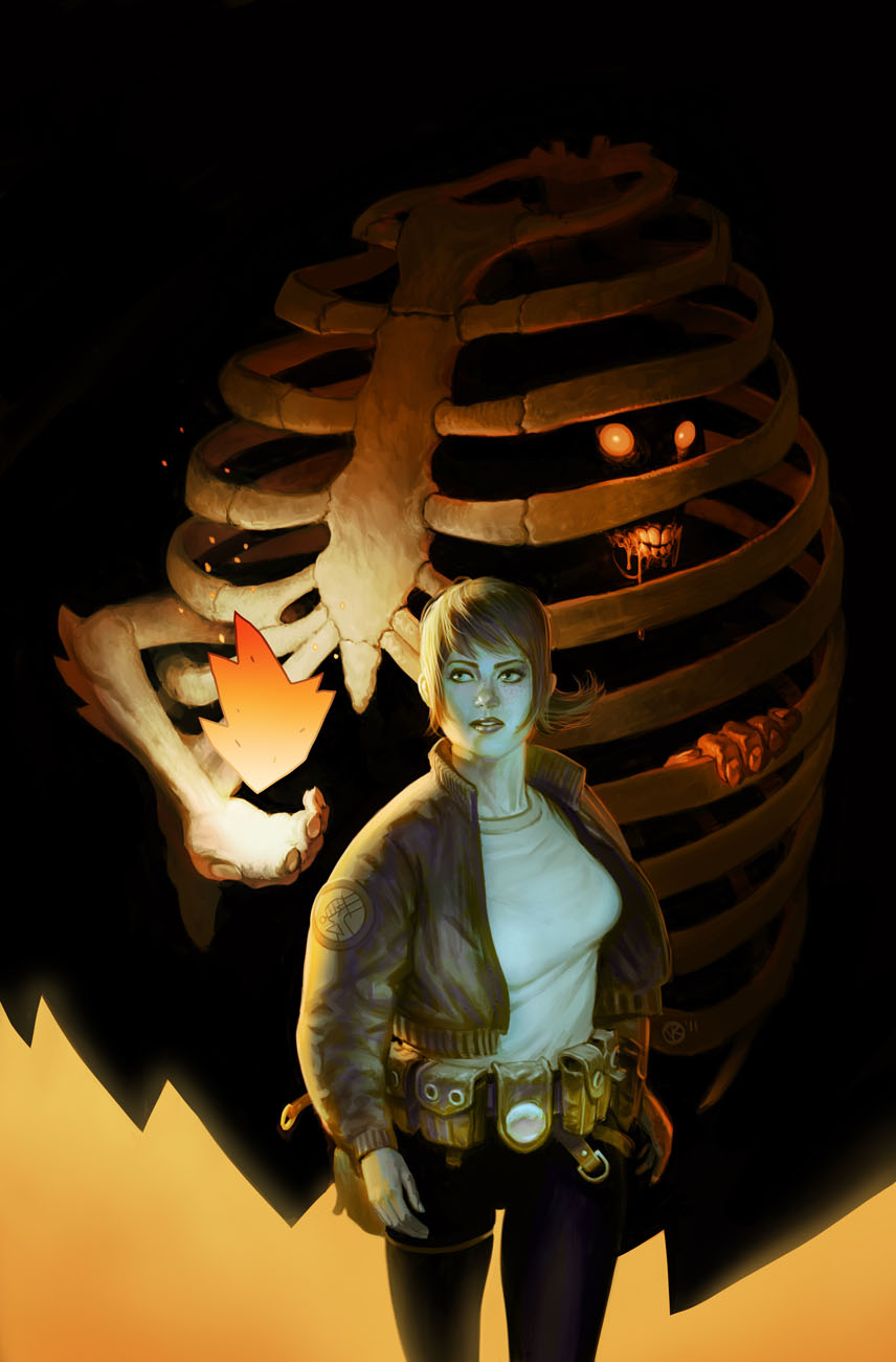 5. Rendering—it's the final sprint line, where I play with details, pushing some back while pulling others to matter more. I had the face and arm of the demon in more detail, but decided to tone them down in favor of the girl. I also managed to add a little joke as a tribute to Mike with the very 2-D flame, Mignola style. :) by Viktor Kalvachev