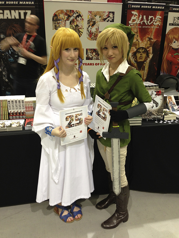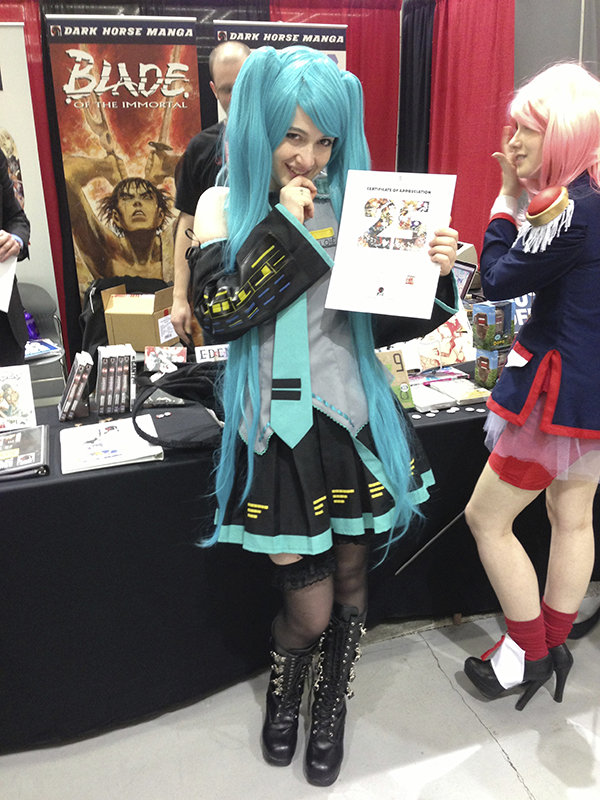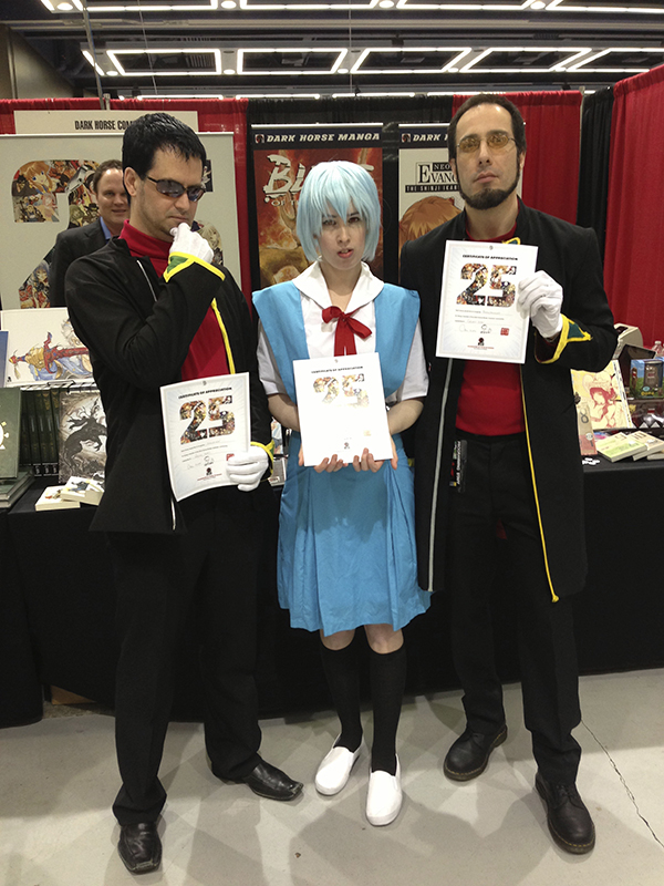 The 2013 con season has been no ordinary one for Dark Horse, as this is our twenty-fifth anniversary year of publishing manga (this is our twenty-seventh year as a comics company…but we’ve been publishing manga almost that long!). We’ve noticed just how many people cosplay as characters from Japanese books that DH publishes, and for our anime and manga convention appearances this year, we made a certificate of appreciation with our twenty-fifth manga anniversary logo! We’d like to share some of those photos with you below.