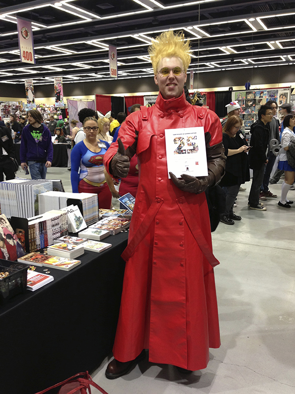 The Trigun Omnibus has just hit stores, and I’ve got to say this is one of the best Vash the Stampedes I’ve seen. It’s been such a popular costume in the past that it somehow seemed hard to do it really well, but he’s got the clothes, the hair, and the attitude!