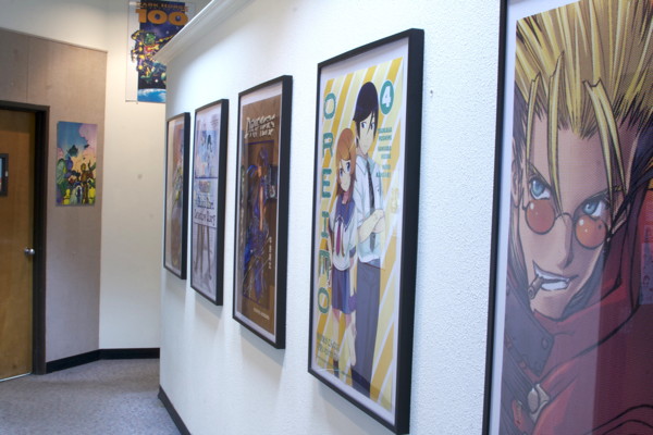 Here's that side of the hallway again, but looking down from the other direction, so as to get a better view of Blood Blockade Battlefront, Neon Genesis Evangelion: The Shinji Ikari Detective Diary, and Drifters. These manga frames, by the way, were created and are updated by Cara Niece, our Director of Scheduling, with the assistance of Jason Rickerd and Jeremy Helton. If you're wondering how the images get chosen, there are a number of factors involved, but one is that we simply ask people in the office for suggestions on what to put up ^_^
