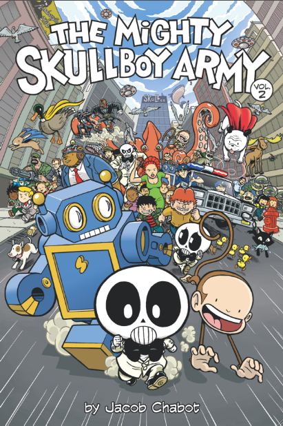 Jacob Chabot was nominated in 2008 for an Eisner Award for Best Publication for Teens, and now he’s back to finish the job with another hilarious collection of short stories! This is Skullboy’s second volume of manic fun, and the robotic, rascally Unit 1 and supersmart, simian Unit 2 await his orders. They’re ready to face any challenge that comes Skullboy’s way, from dodge balls to monster brawls—but are you ready?