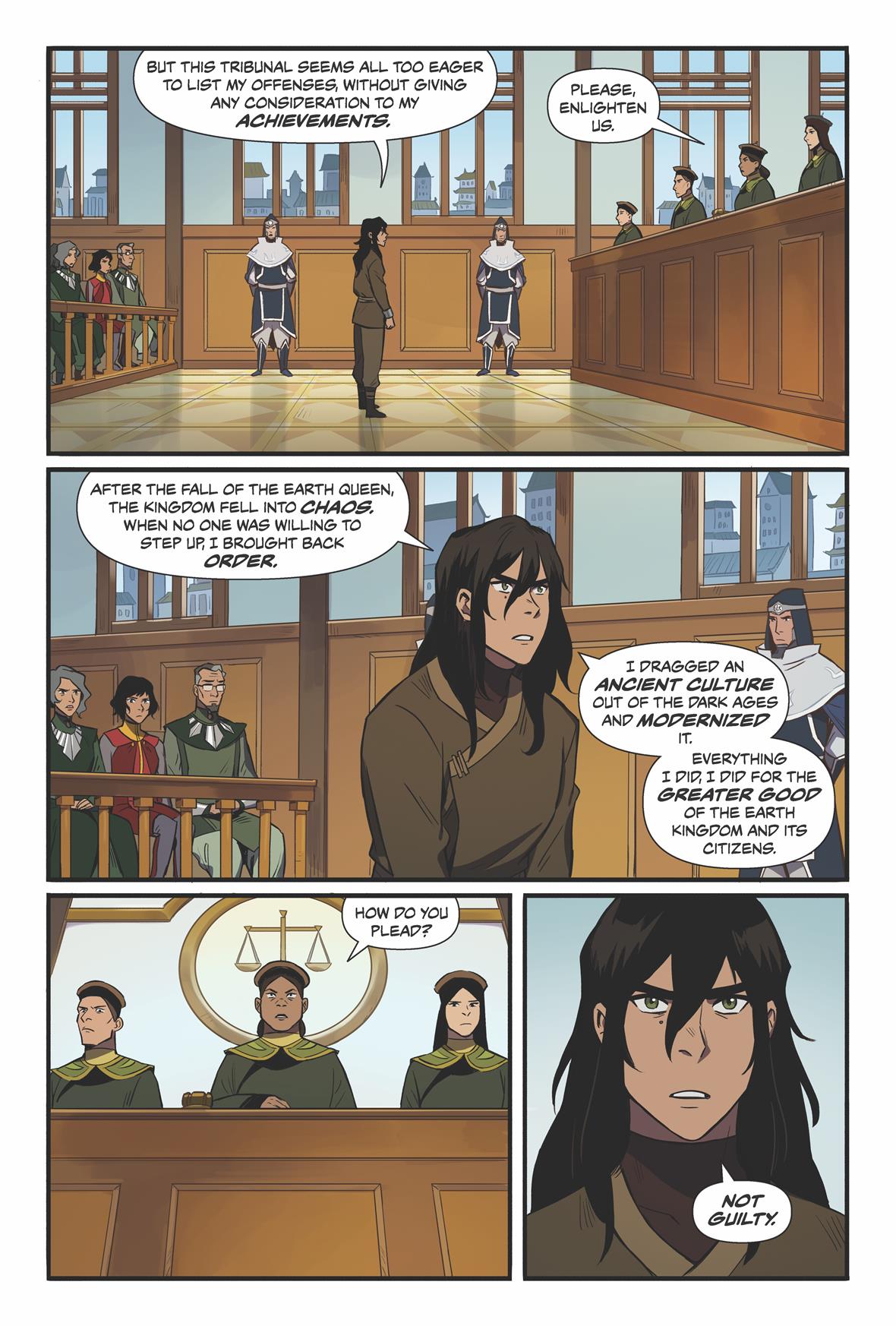 On the eve of its first elections, the Earth Kingdom finds its future endangered by its past. Even as Kuvira stands trial for her crimes, vestiges of her imperial ambitions threaten to undermine the nation’s democratic hopes. However, when Korra, Asami, Mako, and Bolin disagree on the solution, drastic measures will be taken to halt a new march to war and Korra must decide whom to trust as the fate of the Earth Kingdom hangs in the balance!