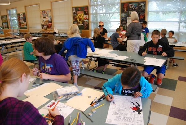 Dark Horse Alumni Randy Emberlin's Comic Book Art and Animation Summer Camps are now in their 6th year with Dark Horse Comics as a major sponsor. The 4 day camps are open to grades 3 through 9 and offer daily instruction from Randy in cartoon character design and construction with lessons in perspective drawing and layout. Students work on three major projects during the camp. They learn to pencil, ink and color a large sound effects action poster, an 11x17" comic book cover, designing at least two characters, (a villain and a hero) using 3-view model sheets and finally they create a 2 page comic strip in pencil and ink. Students also spend an afternoon learning the fundamentals of animation using the Zoetrope Machine to create 12 drawing cycles. Campers enjoy snacks and watch award winning animation during the two breaks and lunchtime. Students can take the camp as a 4 half-days or 4 whole-days and it is now offered in three different weeks during July at Forest Park Elementary School. The camps continue to attract young artists from all over Oregon and Washington.For more information visit Randy's website at www.randyemberlin.com
