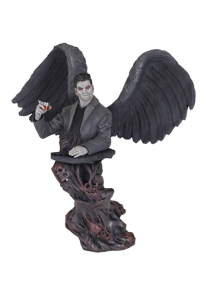 Our bust, sculpted by horror specialist William Paquet, shows Cal with the tools of his trade. The base is an artistic swirl of demons emerging from the ether.
