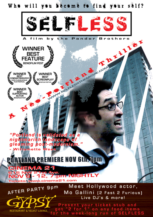 The Pander Brothers (Grendel: Devil’s Legacy, Triple-X, Exquisite Corpse) will be hosting the Portland Premire of their movie Selfless on November 6th at 7:00pm.